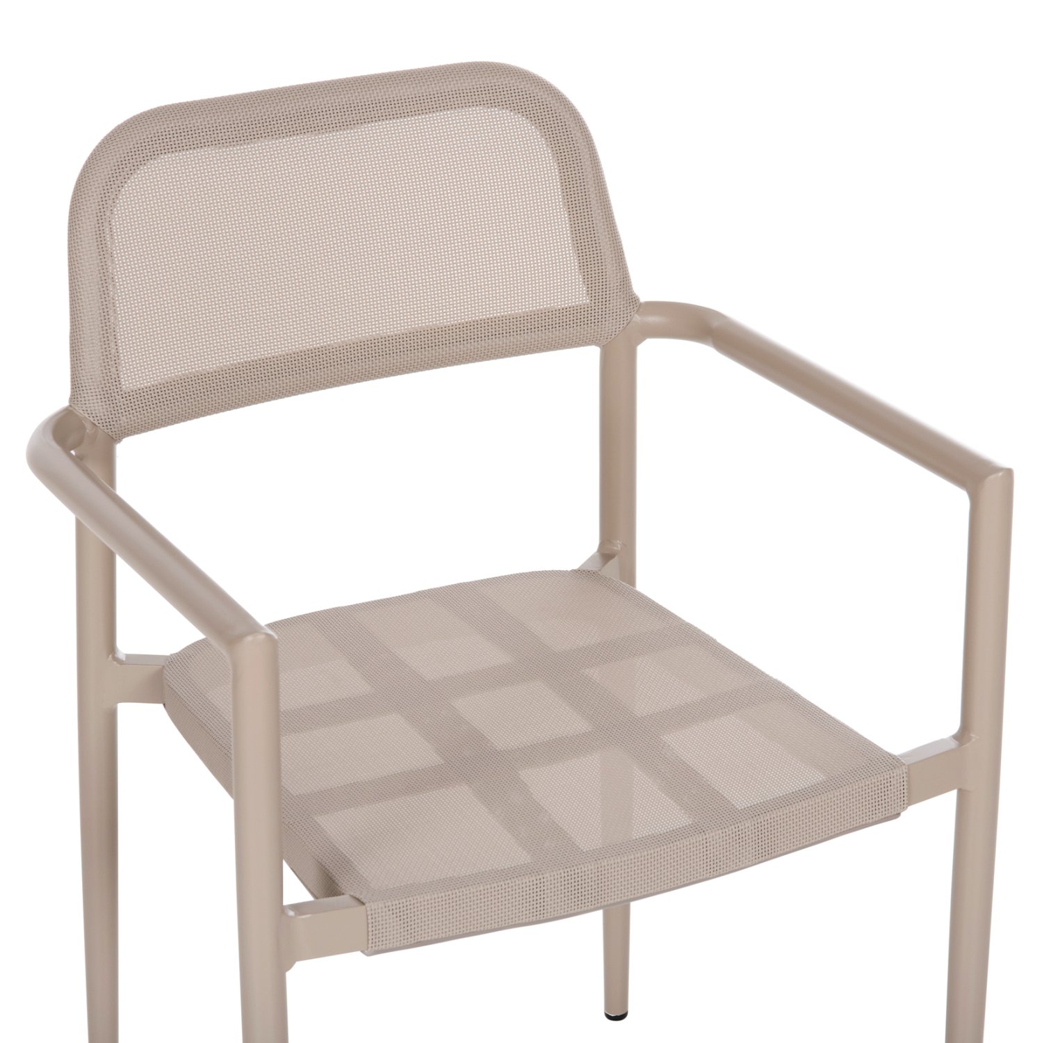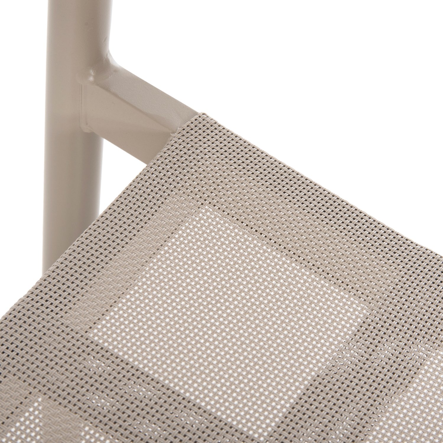 Το κάθισμα και η πλάτη είναι από textline (ή textilene) υψηλής ποιότητας 2×1. Αυτό είναι ένα παχύ, ισχυρό και ανθεκτικό πολυεστερικό ύφασμα. Σημαίνει ότι είναι κατασκευασμένο από πολυεστερικά νήματα με PVC.
