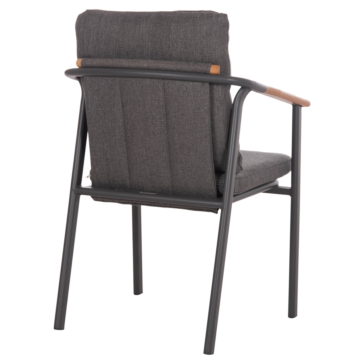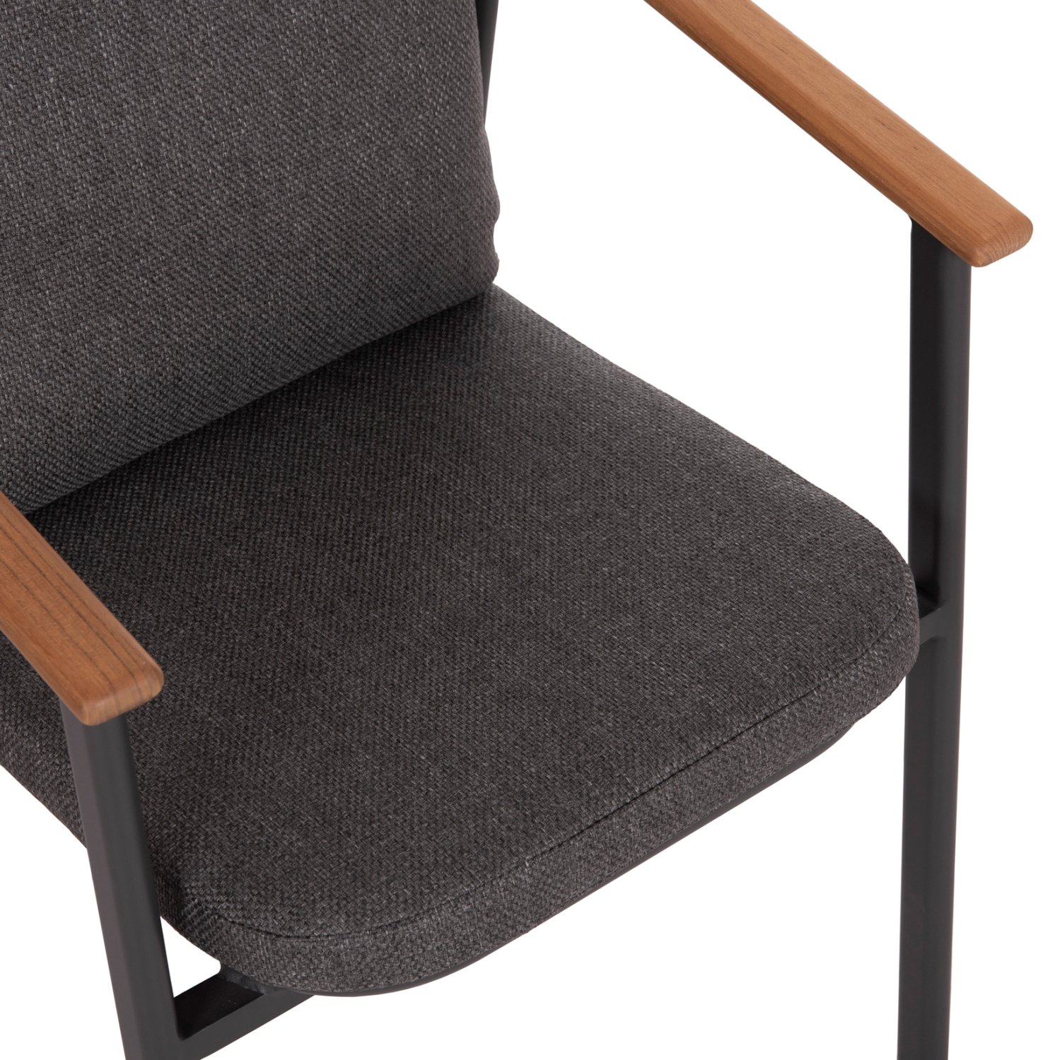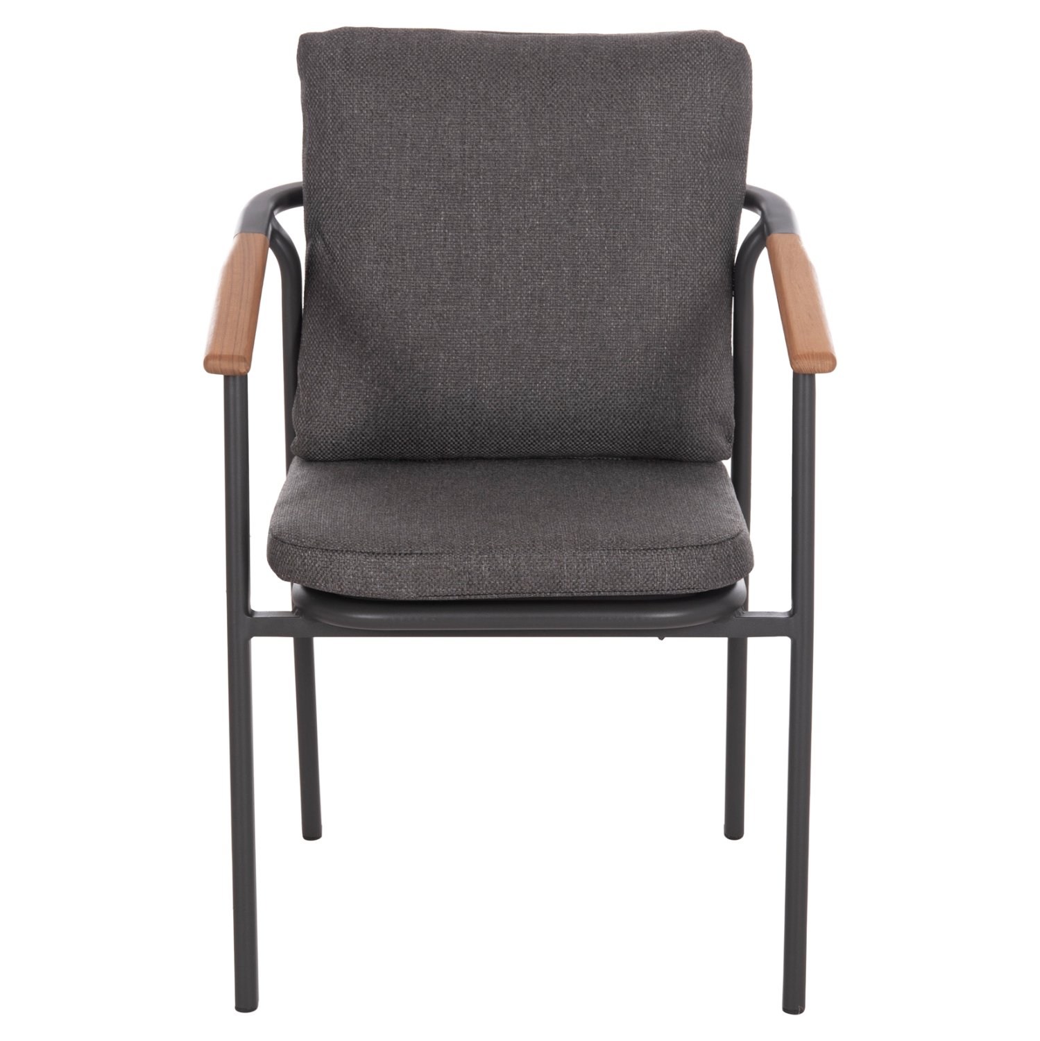 Η πολυθρόνα τραπεζαρίας αλουμινίου SENTI σε ΣΚΟΥΡΟ ΓΚΡΙ χρώμα διαθέτει μαξιλάρια πλάτης και καθίσματος επενδυμένα με ύφασμα OLEFIN, στο ίδιο χρώμα. Η πινελιά με το ξύλο teak στα μπράτσα δίνει μια όμορφη όψη στην πολυθρόνα. Συνδυάστε την με ένα όμορφο τραπέζι και δημιουργήστε μια τραπεζαρία εξωτερικού χώρου που θα κερδίσει τις εντυπώσεις.