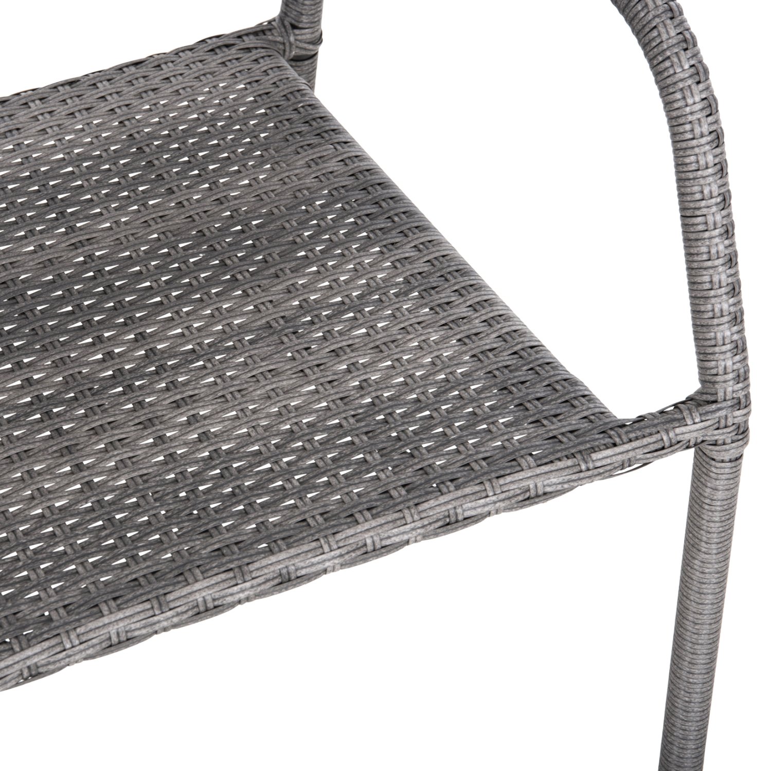 Ολόκληρη η πολυθρόνα είναι επενδυμένη με τεχνοτροπία wicker από συνθετικό υλικό PVC σε συνδυασμό με τεχνητές ίνες υψηλής ποιότητας, το οποίο ράβεται στον εξαιρετικής ποιότητας μεταλλικό σκελετό.