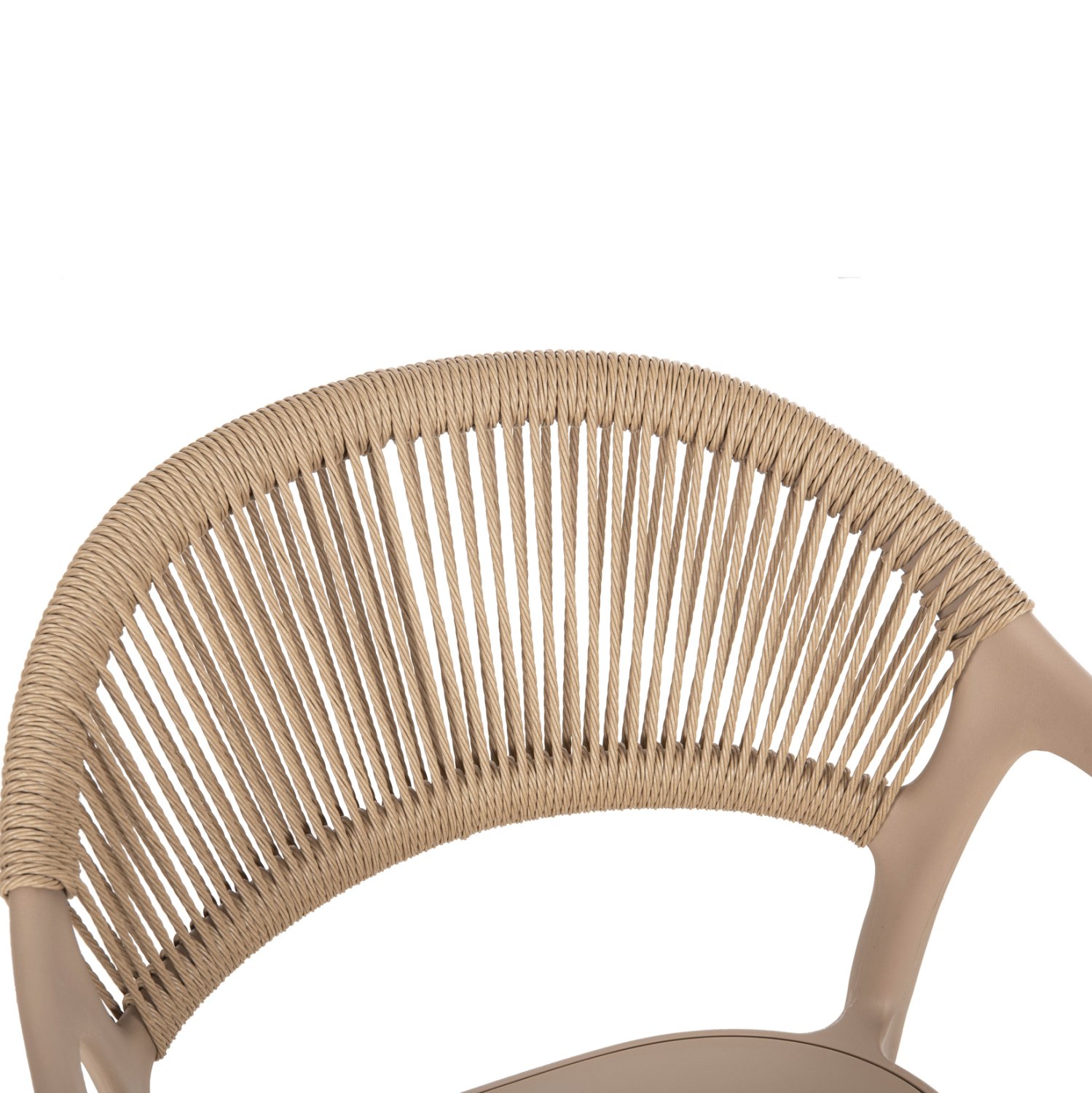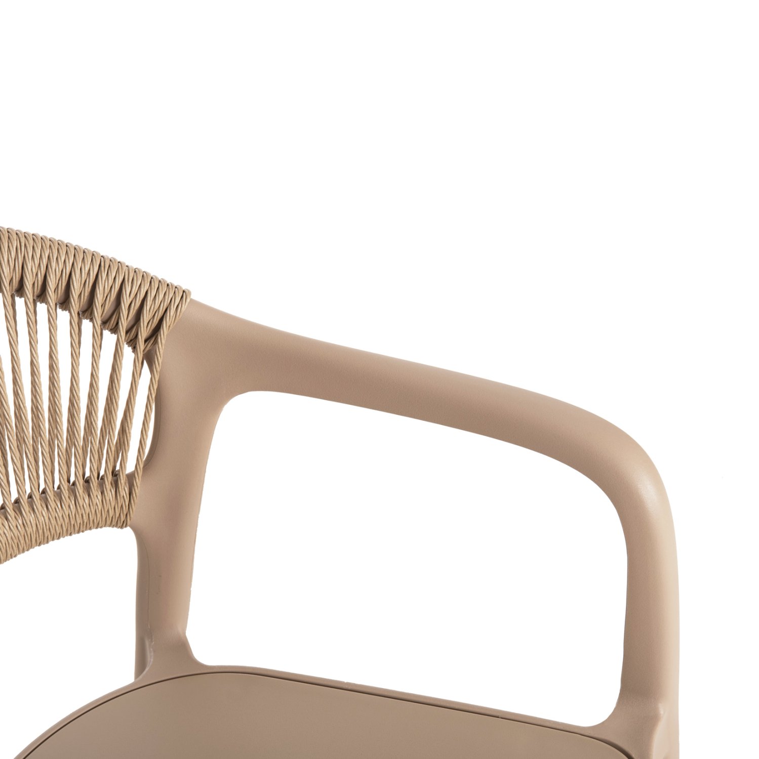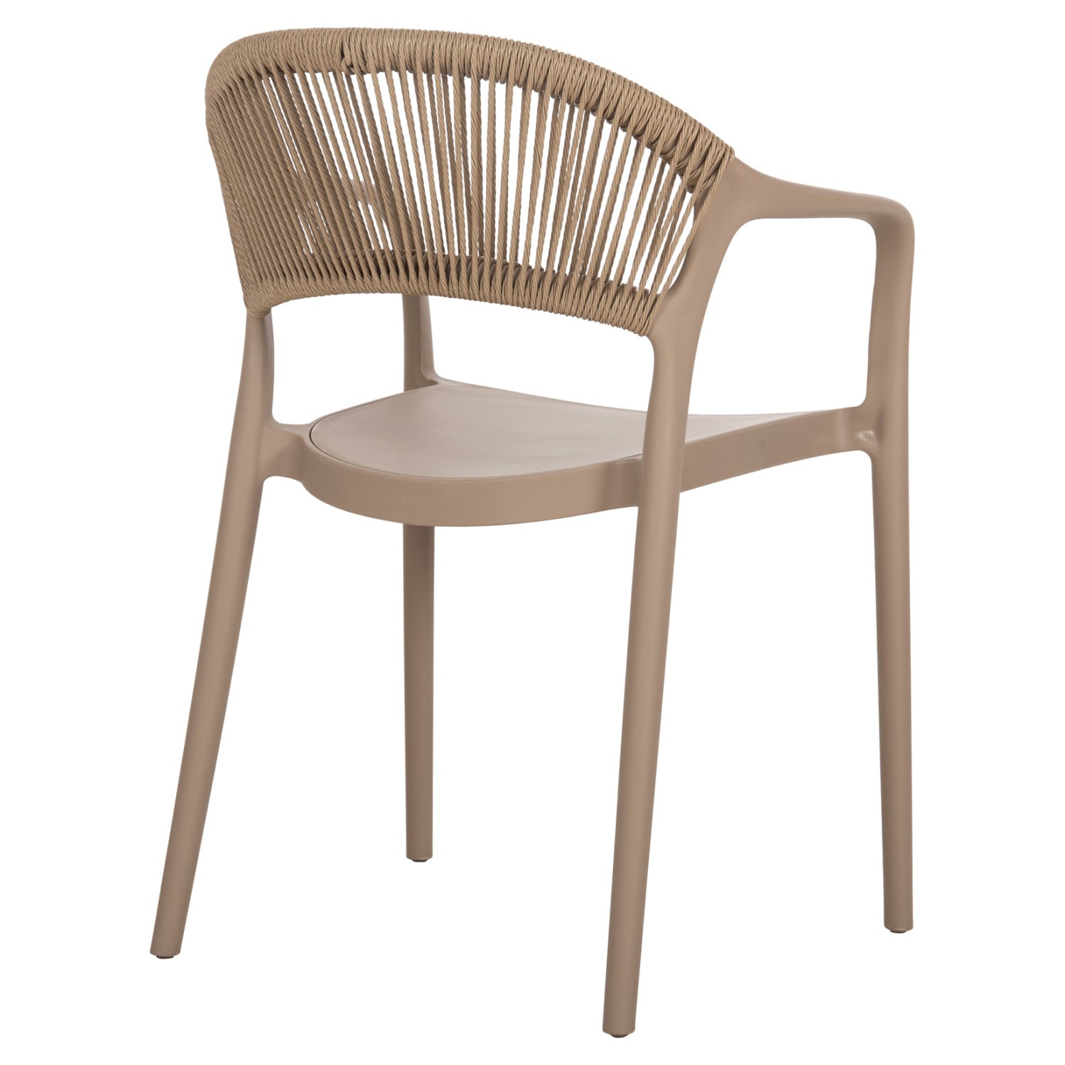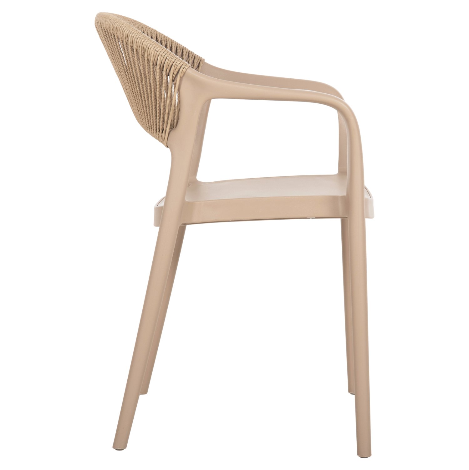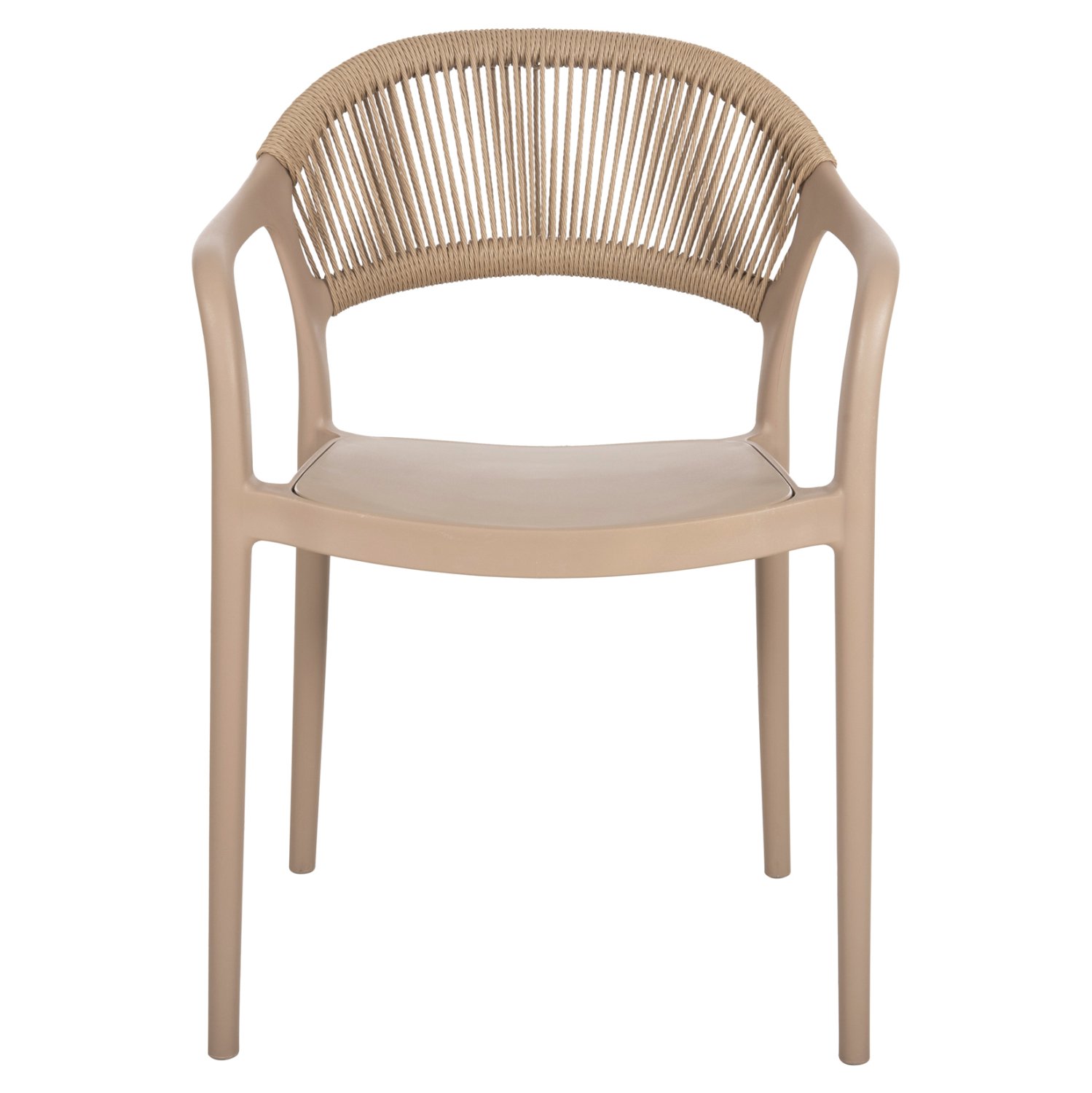 Η πολυθρόνα EVA έχει όλα όσα θα θέλατε από ένα τέτοιο έπιπλο. Όλη η πολυθρόνα είναι από μονοκόμματο πολυπροπυλένιο σε ΚΑΠΟΥΤΣΙΝΟ χρώμα με ελαφρώς κυρτή πλάτη επενδυμένη με συνθετικό σχοινί σε ΜΠΕΖ χρώμα, και πρακτικά μπράτσα. Όλη η κατασκευή είναι ελαφριά και άνετη, και θα γίνει το αγαπημένο κάθισμα σε όποιο χώρο κι αν τοποθετηθεί χάρη στην πρακτικότητά του. Ιδανική επιλογή και για επαγγελματική χρήση, όπως σε catering κτλ., επειδή είναι στοιβαζόμενη.