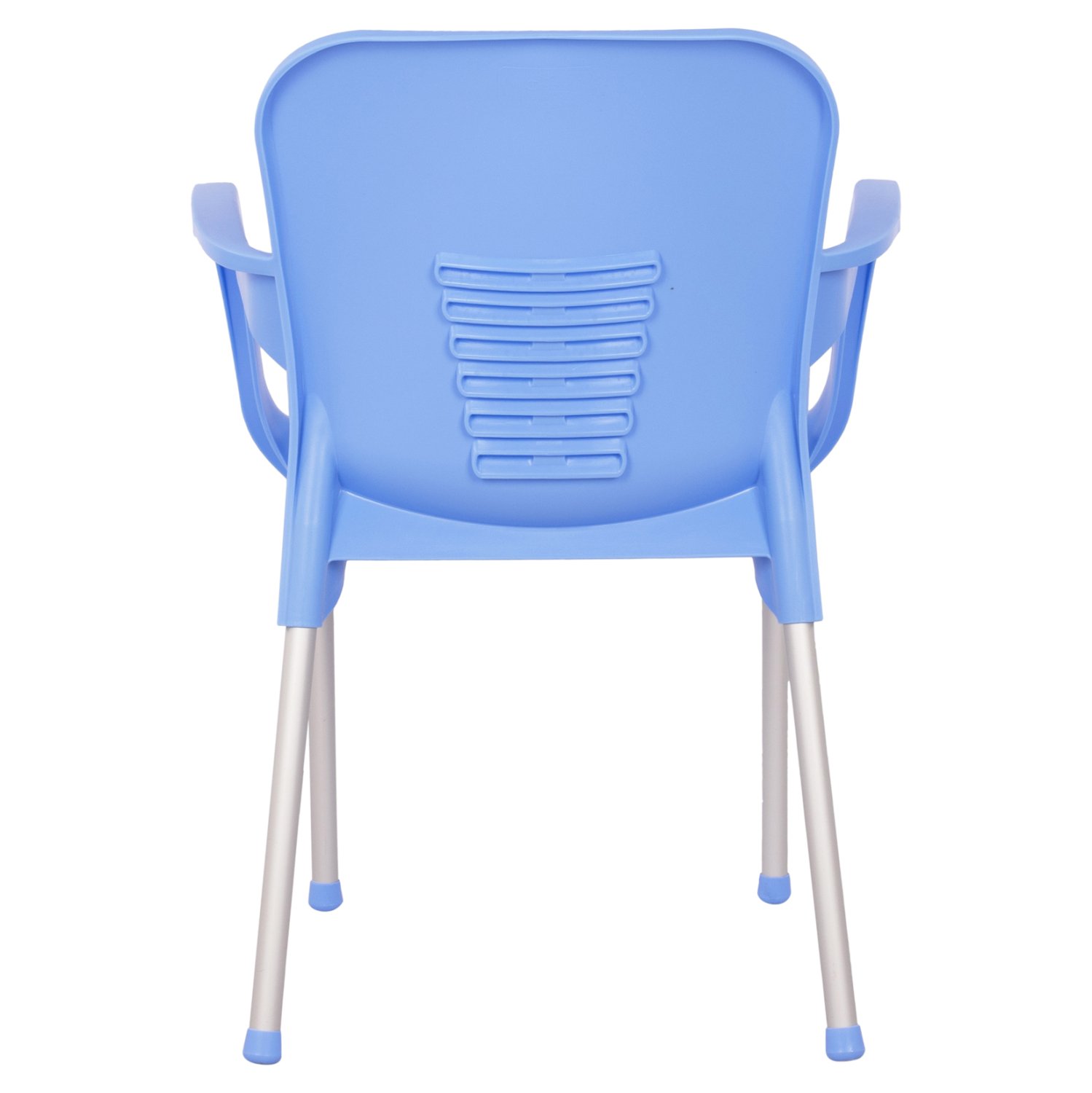Καρέκλα με μπράτσα από πολυπροπυλένιο με πόδια αλουμινίου σε μοντέρνο σχεδιασμό και μεγάλη αντοχή, σε μπλε απόχρωση.