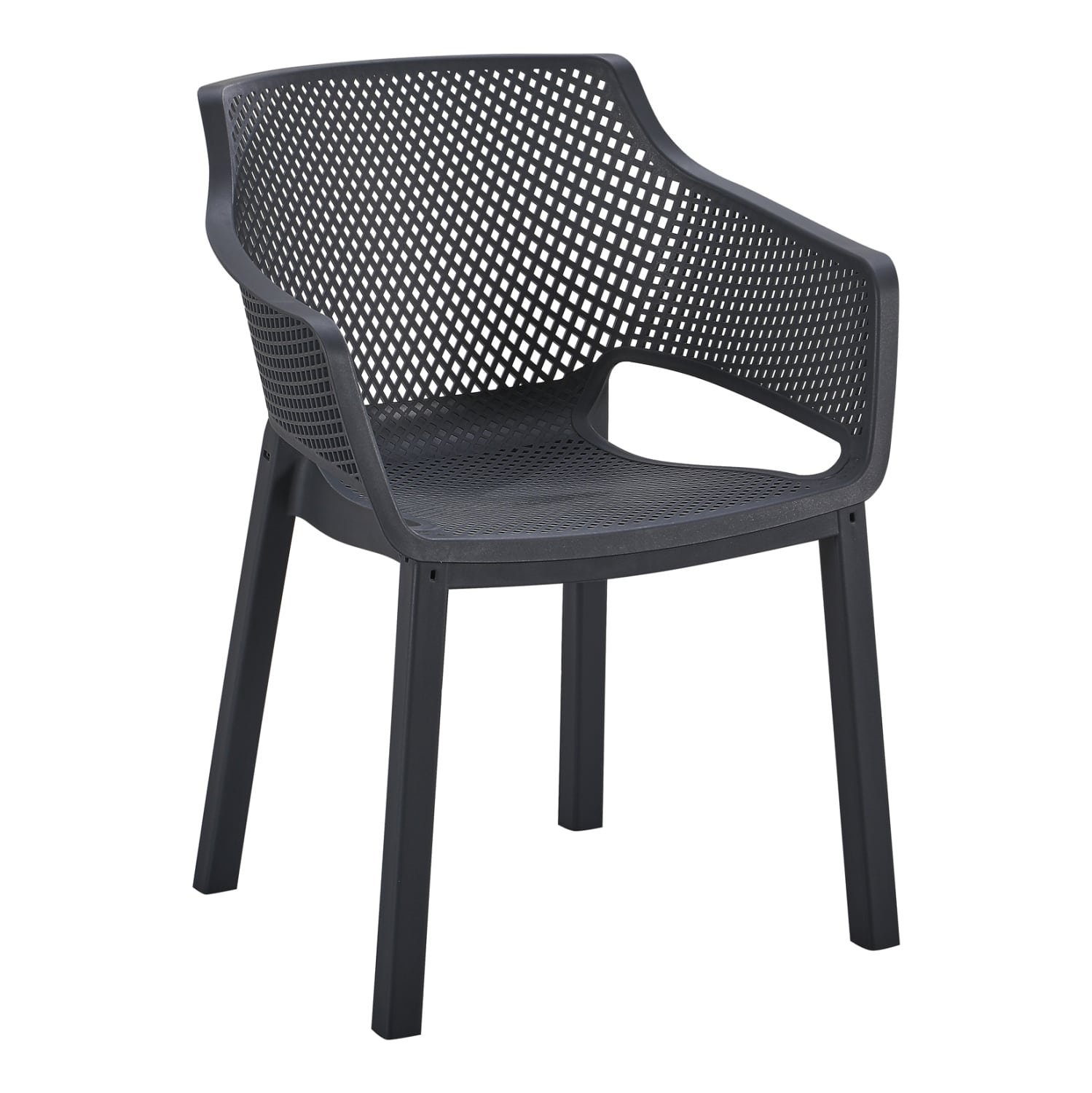 Η πολυθρόνα πολυπροπυλενίου PEGGY σε ΜΑΥΡΟ χρώμα αποτελεί μια κλασική επιλογή για χρήση σε εξωτερικούς χώρους, είτε επαγγελματικούς μιας και είναι ΣΤΟΙΒΑΖΟΜΕΝΗ (χώροι δεξιώσεων, εταιρείες catering, κλπ.) είτε για το σπίτι. Αποτελείται από ένα χυτό «τρυπητό» σύνολο καθίσματος-πλάτης-μπράτσων για καλύτερο αερισμό.