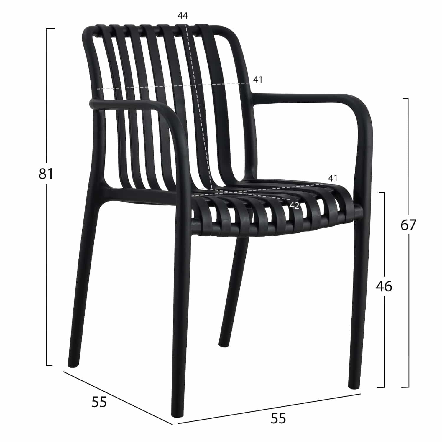 Η πολυθρόνα ΗΜ5940.02 είναι μια κλασσική πολυθρόνα εξωτερικού χώρου που θα καλύψει κάθε σας ανάγκη στην αυλή ή το μπαλκόνι σας. Είναι ποιοτική και κομψή στην όψη, και σίγουρα τραβάει τα βλέμματα. Όλη η πολυθρόνα είναι από μονοκόμματο πολυπροπυλένιο σε ΜΑΥΡΟ χρώμα. Η πολυθρόνα είναι στοιβαζόμενη, ελαφριά και άνετη, ιδανική επιλογή και για επαγγελματική χρήση, όπως σε catering κτλ.