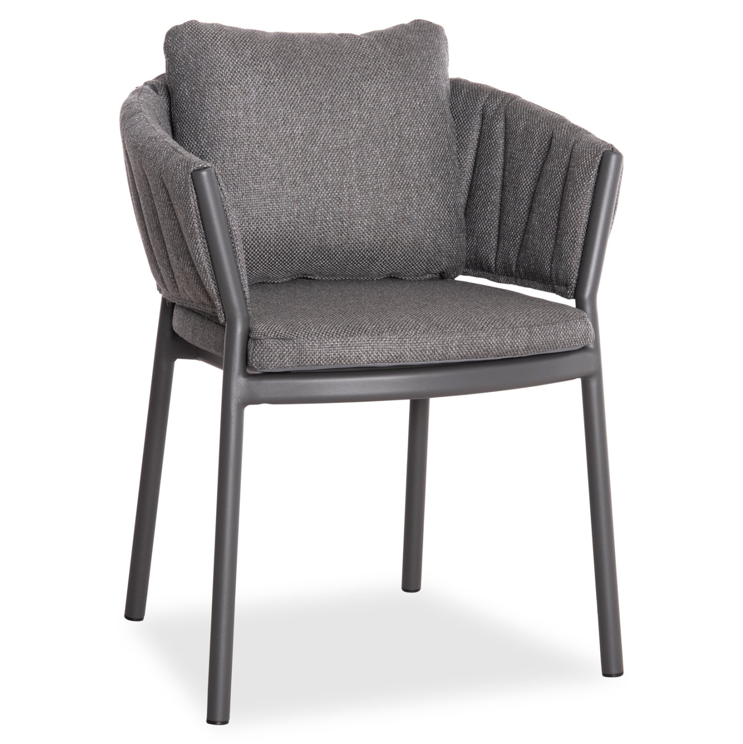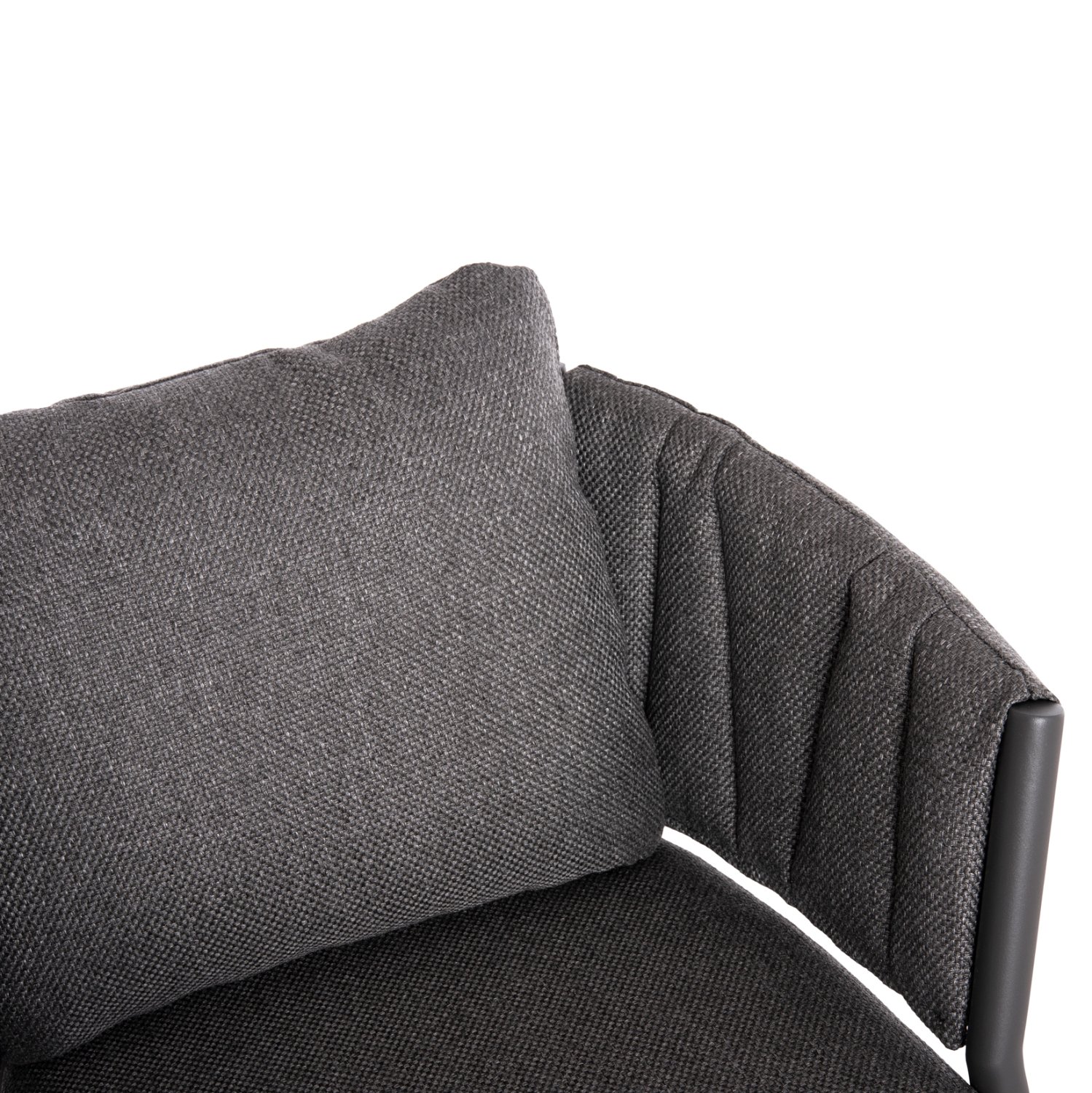 Η πολυθρόνα αλουμινίου SHANKS σε ΣΚΟΥΡΟ ΓΚΡΙ χρώμα έχει ημικυκλική πλάτη και διαθέτει μαξιλάρια πλάτης και καθίσματος. Αισθητικά, είναι επενδυμένη με ύφασμα OLEFIN, ενώ και τα καλύμματα στα μαξιλάρια είναι με OLEFIN ύφασμα, όλα σε ΣΚΟΥΡΟ ΓΚΡΙ χρώμα. Εσείς το μόνο που έχετε να κάνετε είναι να βρείτε το κατάλληλο τραπέζι για να ταιριάξετε αυτή την υπέροχη πολυθρόνα.