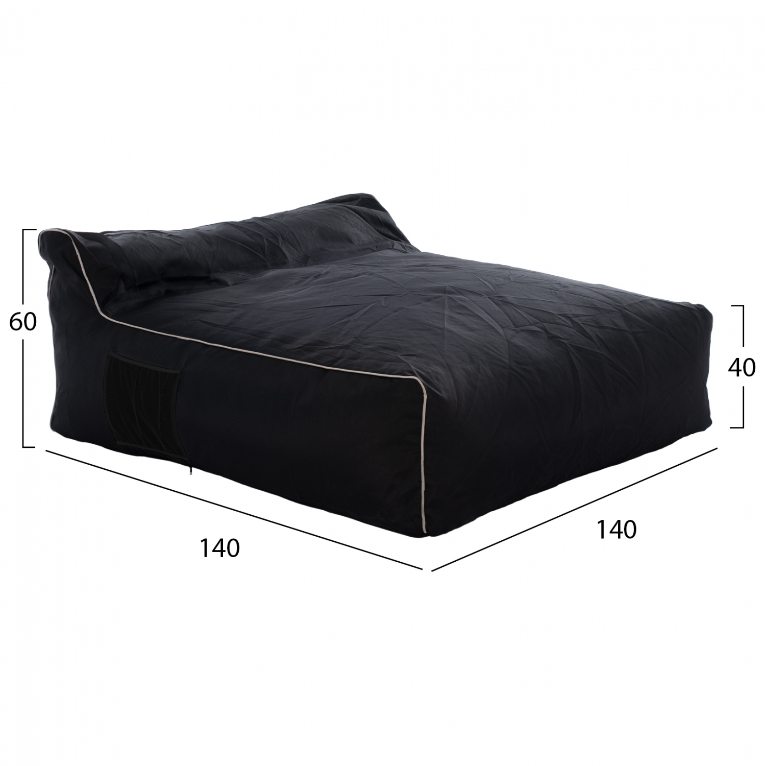 Επαγγελματικό πουφ δύο ατόμων, κατασκευασμένο από textline 2×1 σε μαύρη απόχρωση, πολύ μεγάλης αντοχής στον ήλιο, την υγρασία και την τριβή.