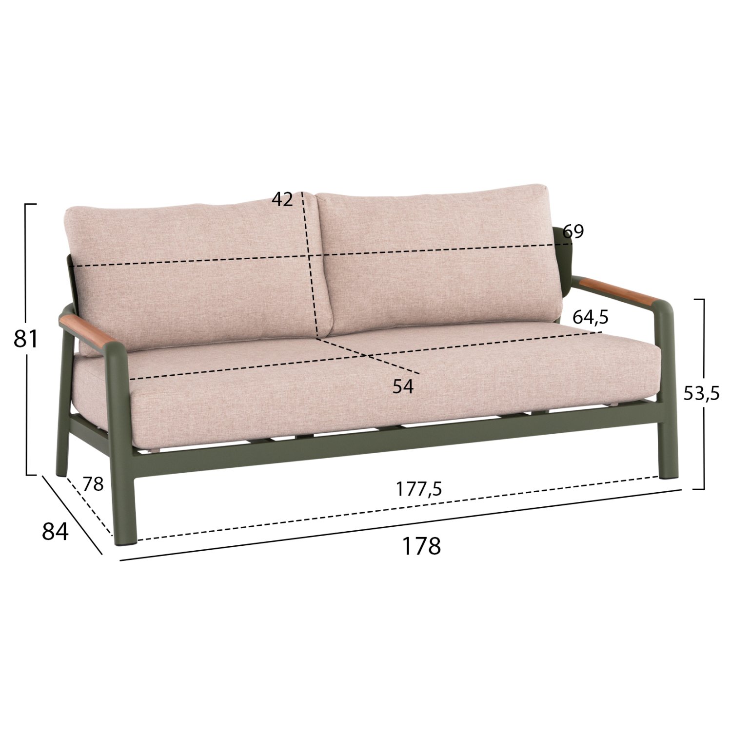 Πάχος μαξιλαριών καθίσματος: 17 εκ.—-Προδιαγραφές αφρού: D25