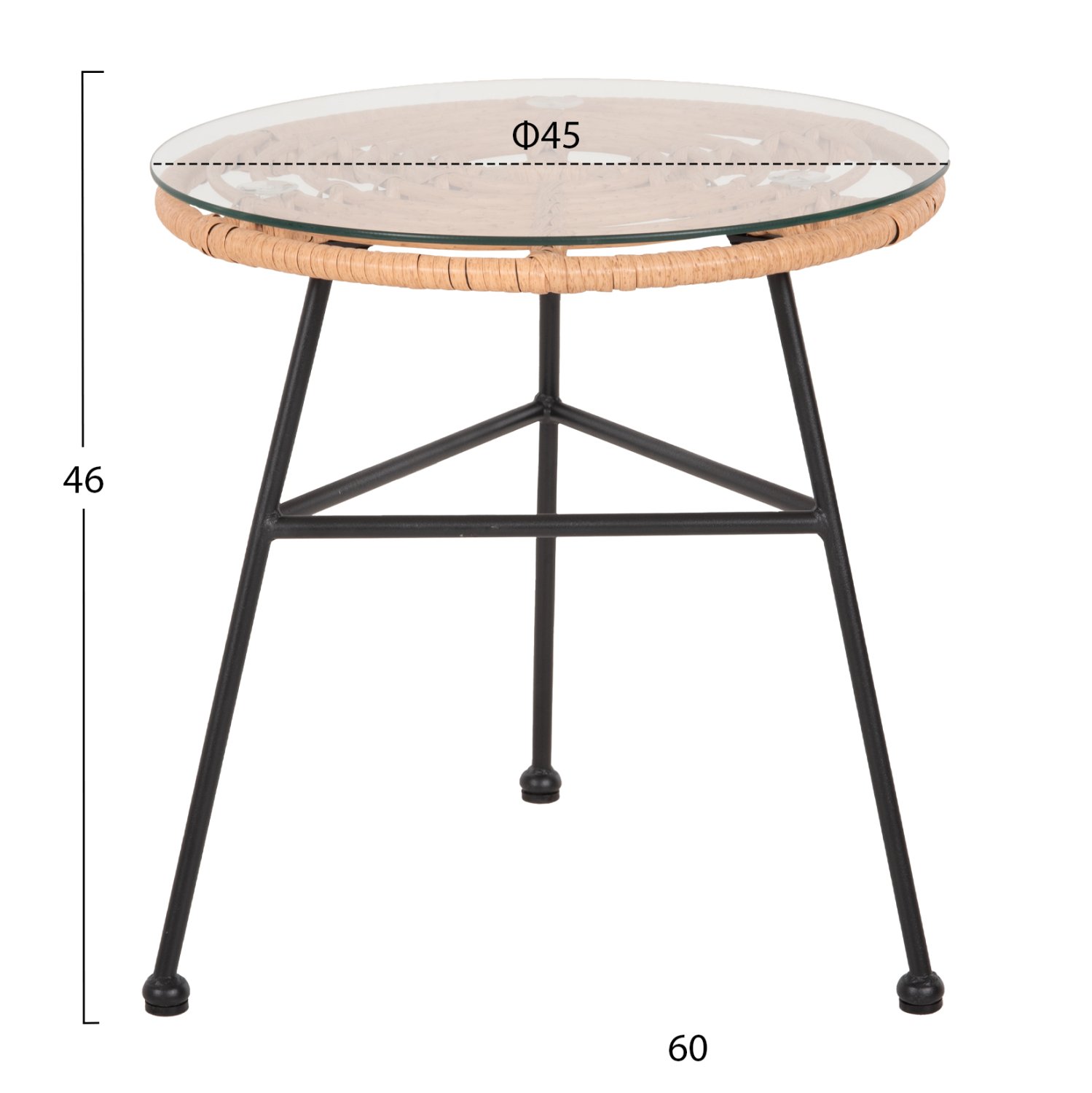 ΤΡΑΠΕΖΑΚΙ ΣΤΡΟΓΓΥΛΟ ΜΑΥΡΟ ΜΕΤΑΛΛΙΚΟ ALLEGRA HM5459.11 ΜΠΕΖ WICKER-ΓΥΑΛΙ Φ45×46Υεκ