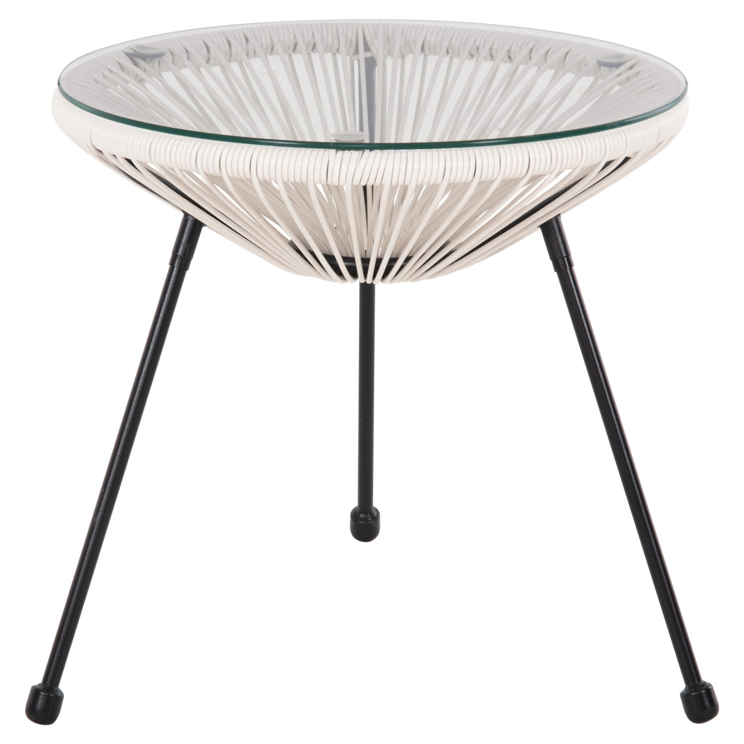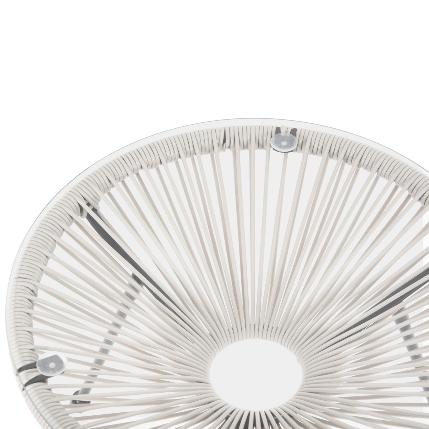 Το ALLEGRA είναι ένα χαμηλό στρογγυλό βοηθητικό τραπέζι, κυρίως για εξωτερικούς χώρους. Στηρίζεται σε μια βάση με 3 μαύρα μεταλλικά πόδια. Το τραπέζι είναι κωνικό από συνθετικό Rattan σε ΛΕΥΚΟ χρώμα, και η επιφάνειά του είναι γυαλί ασφαλείας. Ένα πανέμορφο τραπέζι, το οποίο αν συνδυαστεί και με καρέκλες της ίδιας σειράς θα αποτελέσει ένα καταπληκτικό μέρος στον χώρο σας.