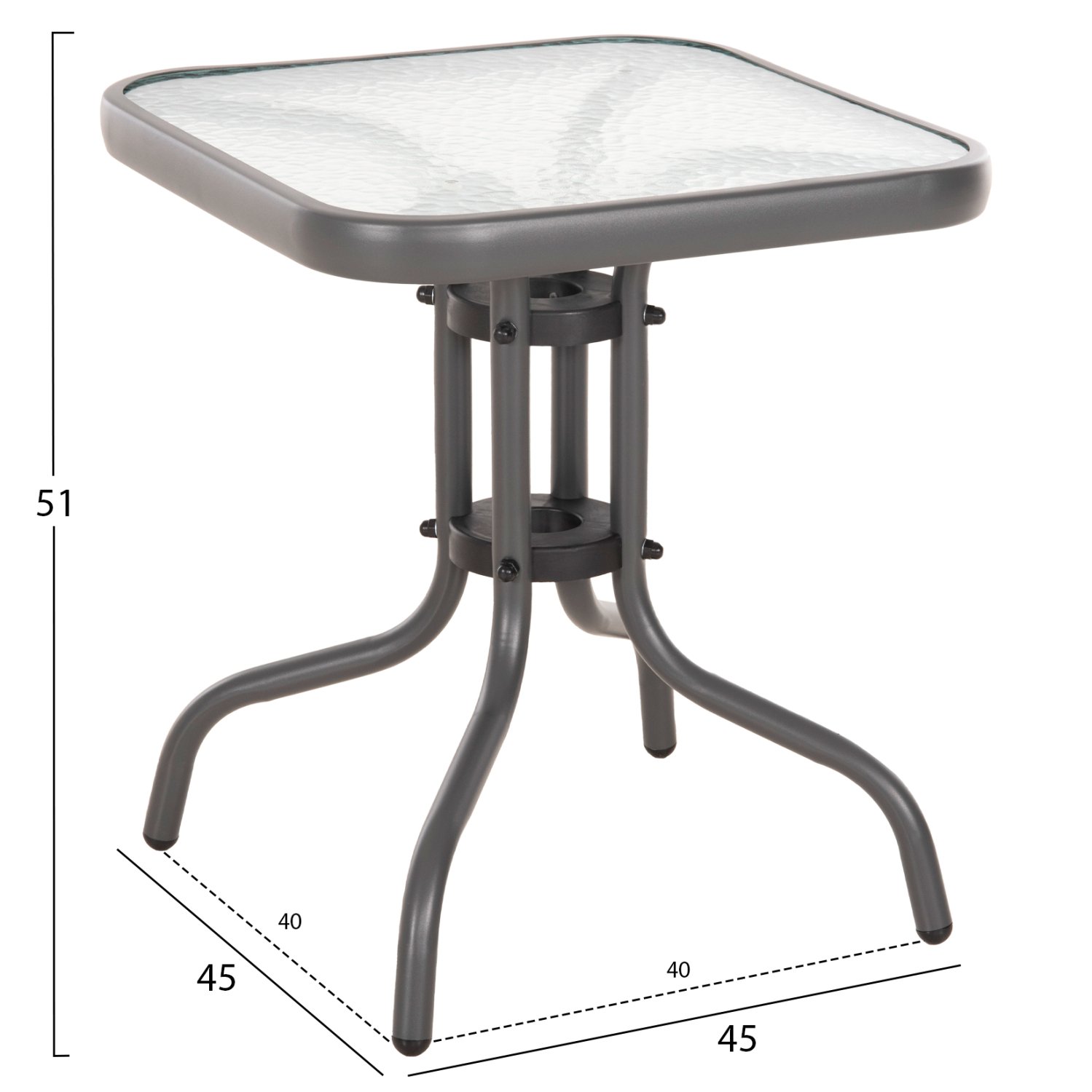 ΤΡΑΠΕΖΙ ΒΟΗΘΗΤΙΚΟ FIGO HM6067.01 ΜΕΤΑΛΛΙΚΟ ΓΚΡΙ-ΓΥΑΛΙΝΗ ΕΠΙΦΑΝΕΙΑ 45x45x51Yεκ