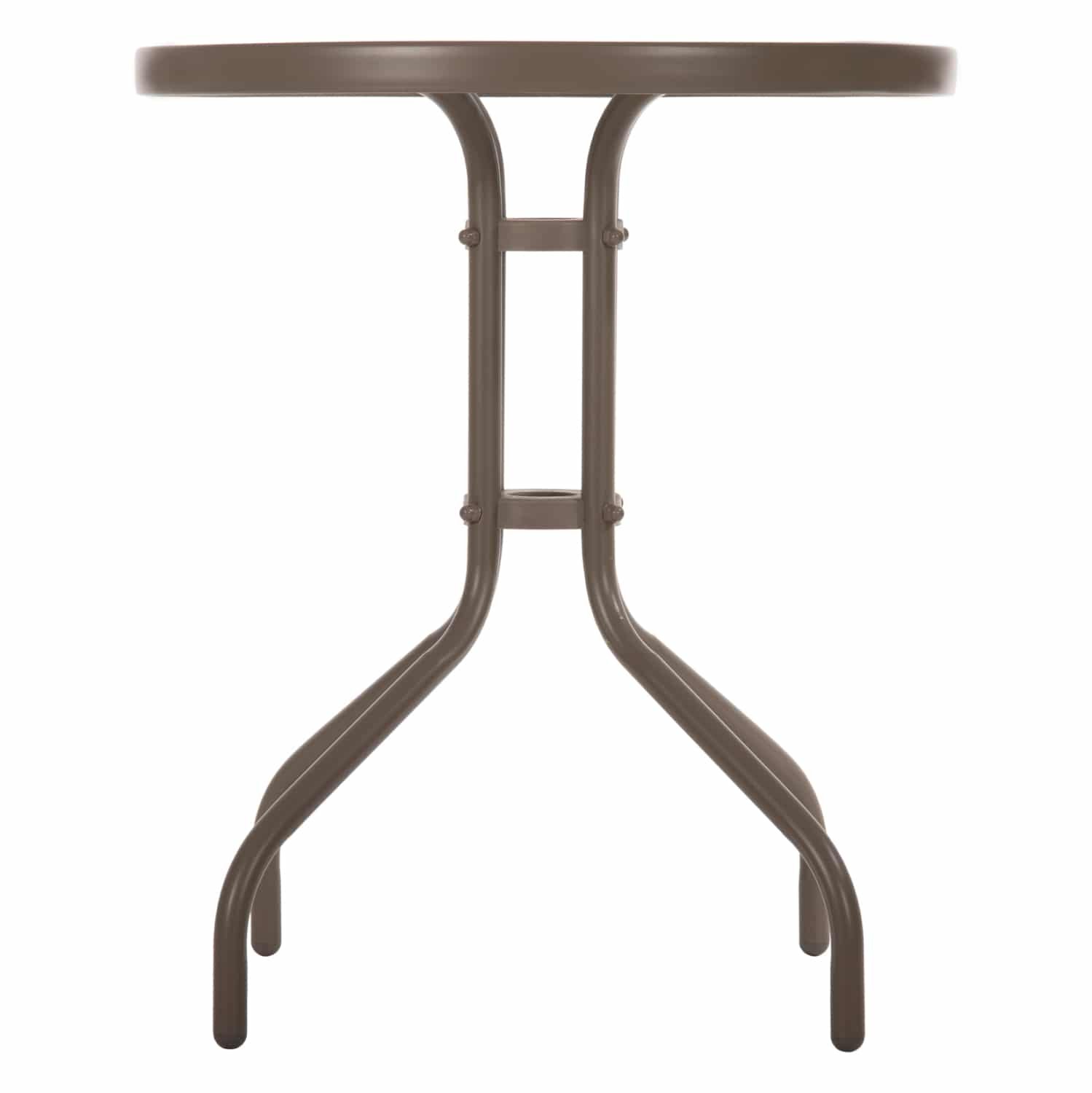 Το μεταλλικό τραπέζι εξωτερικού χώρου LIMA σε ΣΑΜΠΑΝΙ χρώμα είναι στρογγυλό και έχει καμπυλωτή διάταξη στα πόδια. Πρόκειται για πολύ δημοφιλές τραπέζι που δεν λείπει σχεδόν από κανέναν μπαλκόνι ή κήπο. Το τραπέζι ενδείκνυται εκτός των άλλων και για περιορισμένους χώρους, όπως μπαλκόνια ή μικρές αυλές.