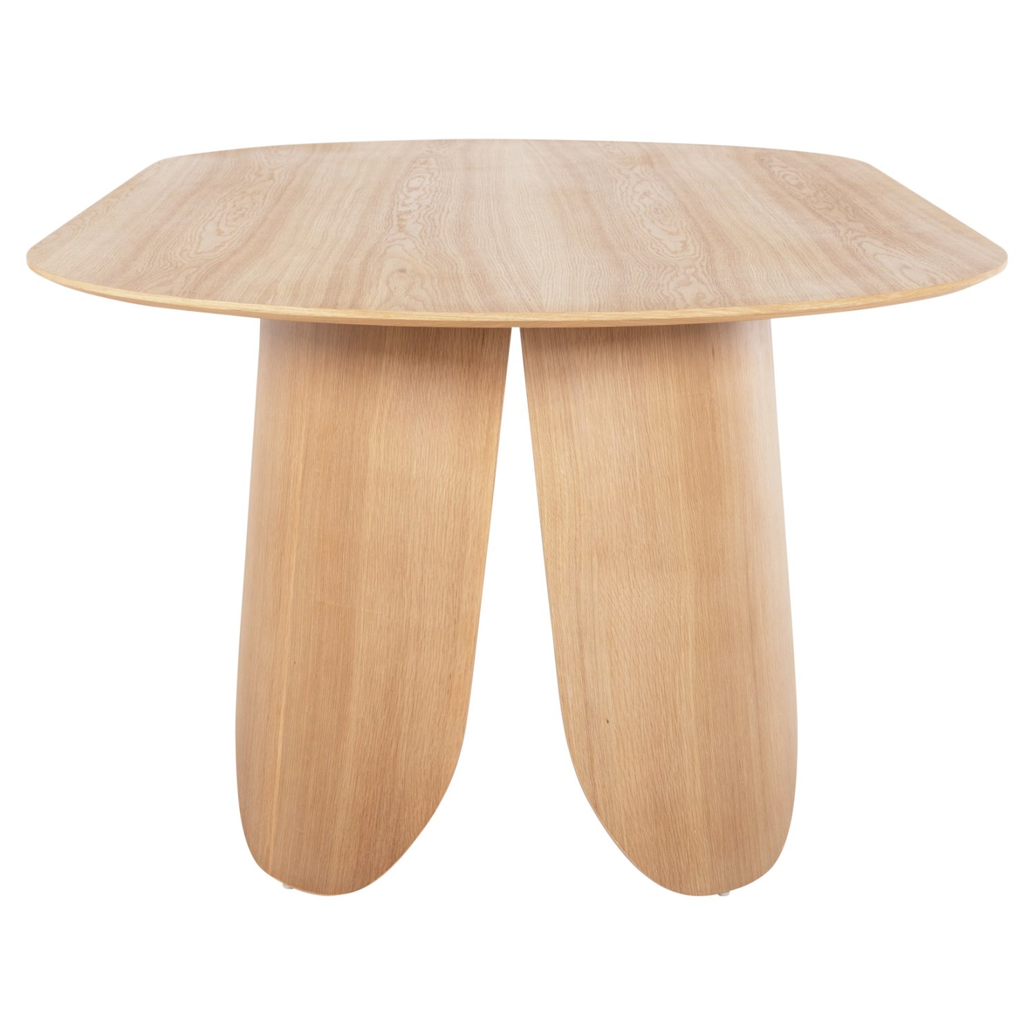 Το DENTY είναι ένα μεγάλο οβάλ τραπέζι για την τραπεζαρία, με φαλτσοκομμένη επιφάνεια από MDF με καπλαμά δρυός σε ΦΥΣΙΚΟ χρώμα ΔΡΥΟΣ. Η επιφάνεια αυτή στηρίζεται σε 2 πανέμορφες ξύλινες στρογγυλές βάσεις με ίδιο χρωματισμό. Ένα τραπέζι που θα τραβήξει τα βλέμματα και θα αναβαθμίσει αισθητικά κάθε τραπεζαρία ή χώρο εστίασης, χάρη στο μέγεθος αλλά και στο μοντέρνο design του.