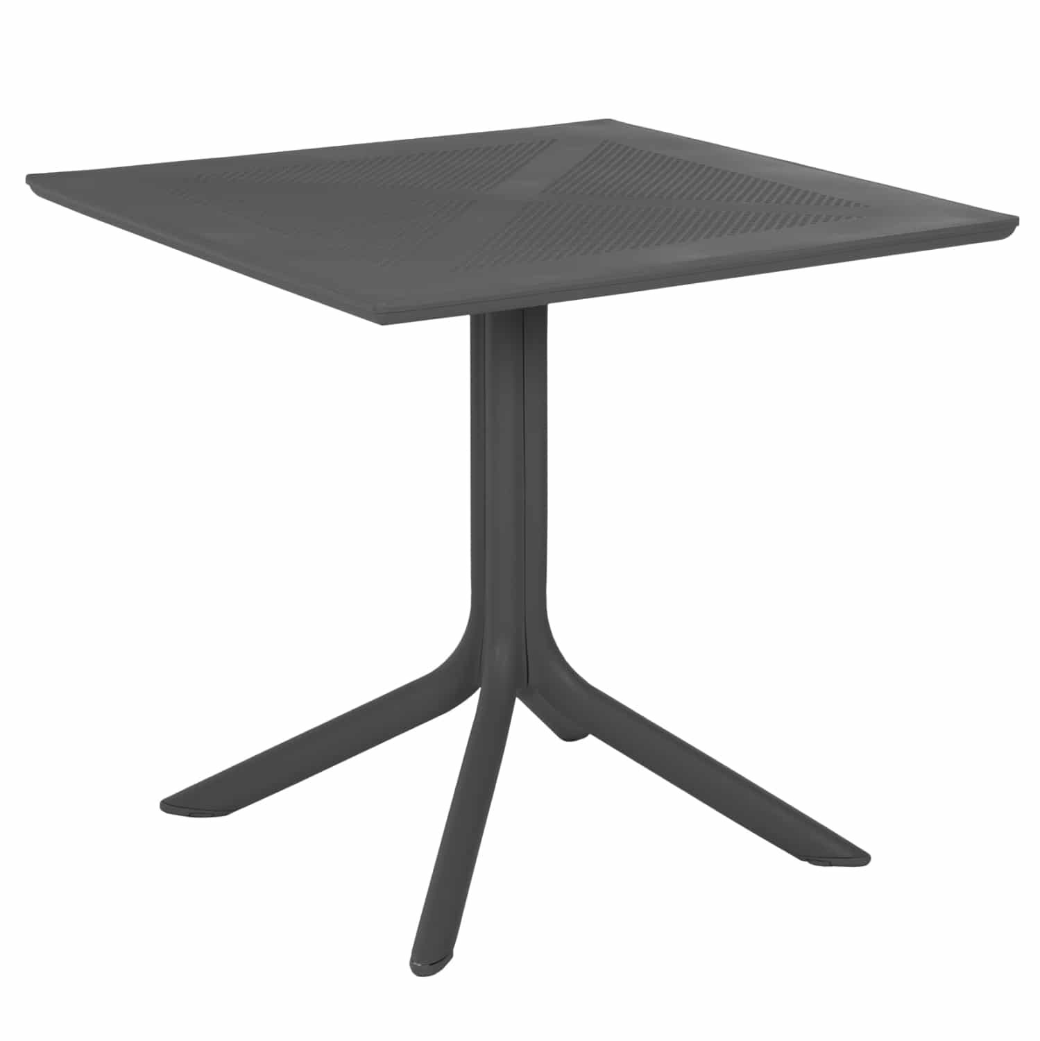 Τραπέζι πολυπροπυλενίου σε ΓΚΡΙ χρώμα. Ιδανική πρόταση για χρήση σε εξωτερικούς χώρους, είτε επαγγελματικούς (χώροι δεξιώσεων, εταιρείες catering, κλπ.) είτε για το σπίτι. Το τραπέζι αποτελείται από μια «τρυπητή» τετράγωνη επιφάνεια, ενώ η στήριξη γίνεται με μια κολώνα στο κέντρο που καταλήγει σε 4 πόδια («νύχια»).