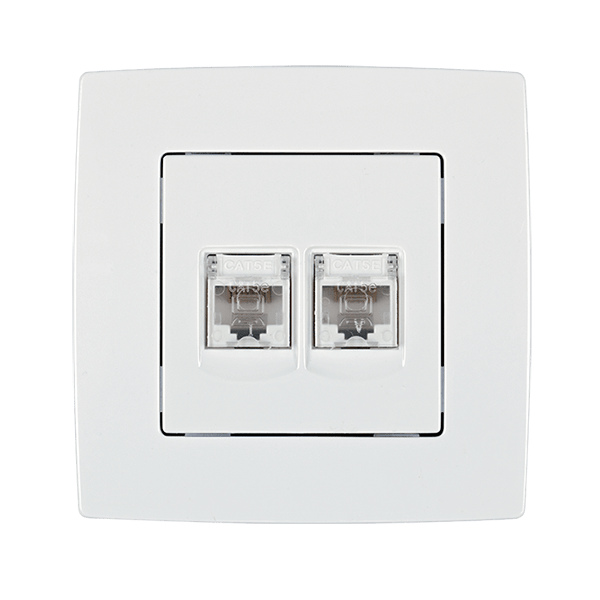 Διπλή πρίζα υπολογιστή (Computer line socket) της σειράς CITY από την Elmark, σε λευκό μεταλλιζέ χρώμα. Ιδανική για επαγγελματικούς και οικιακούς χώρους, προσφέρει αξιόπιστη συνδεσιμότητα και minimal αισθητική.