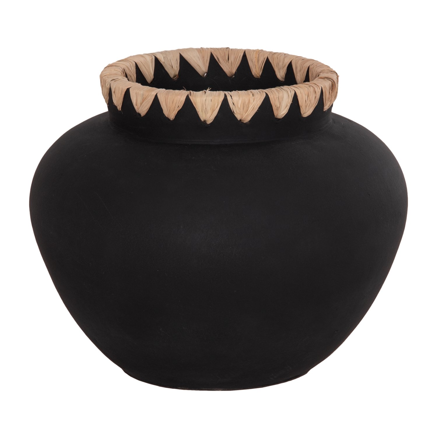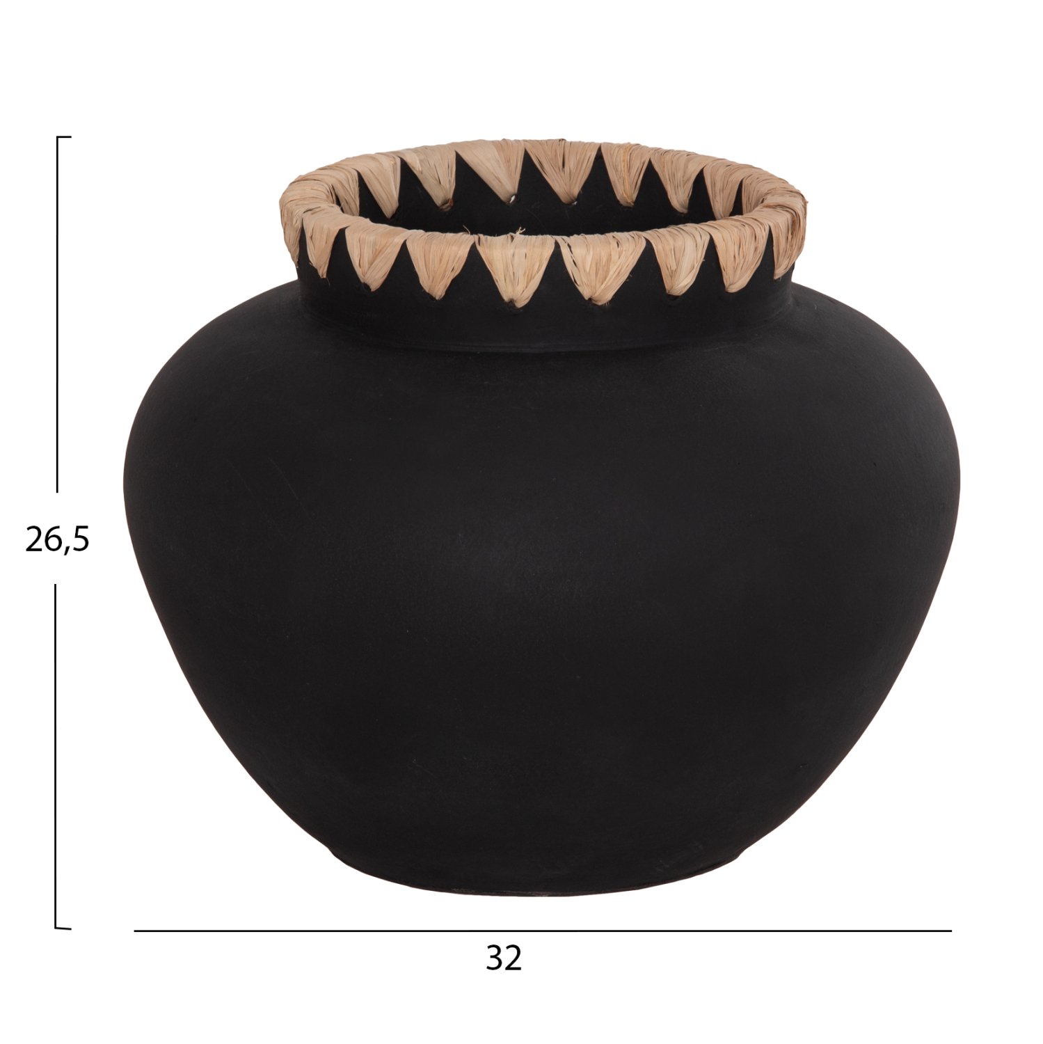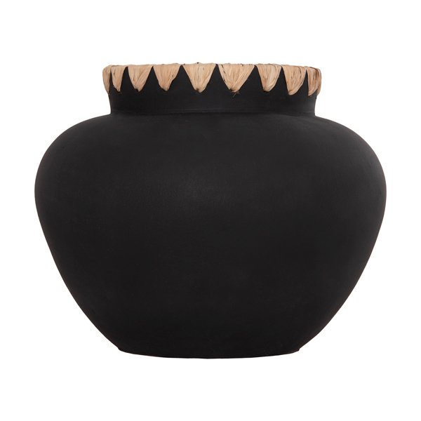 Το διακοσμητικό βάζο RENTON(L) είναι φαρδύ με μεγάλο στόμιο με πλέξη ψάθας. Είναι σε ΜΑΥΡΗ απόχρωση και μπορεί να ταιριάξει οπουδήποτε το θελήσετε. Είτε στο σπίτι είτε σε επαγγελματικούς χώρους.