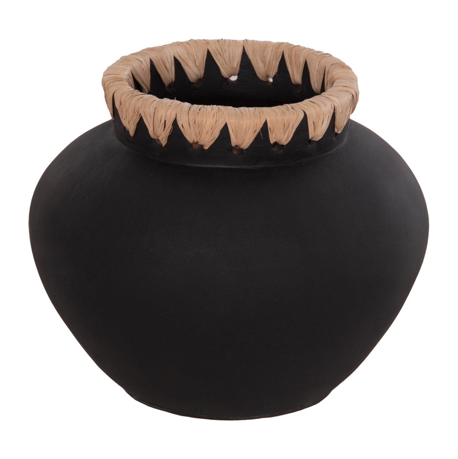 Το διακοσμητικό βάζο RENTON(S) είναι φαρδύ με μεγάλο στόμιο με πλέξη ψάθας. Είναι σε ΜΑΥΡΗ απόχρωση και μπορεί να ταιριάξει οπουδήποτε το θελήσετε. Είτε στο σπίτι είτε σε επαγγελματικούς χώρους.