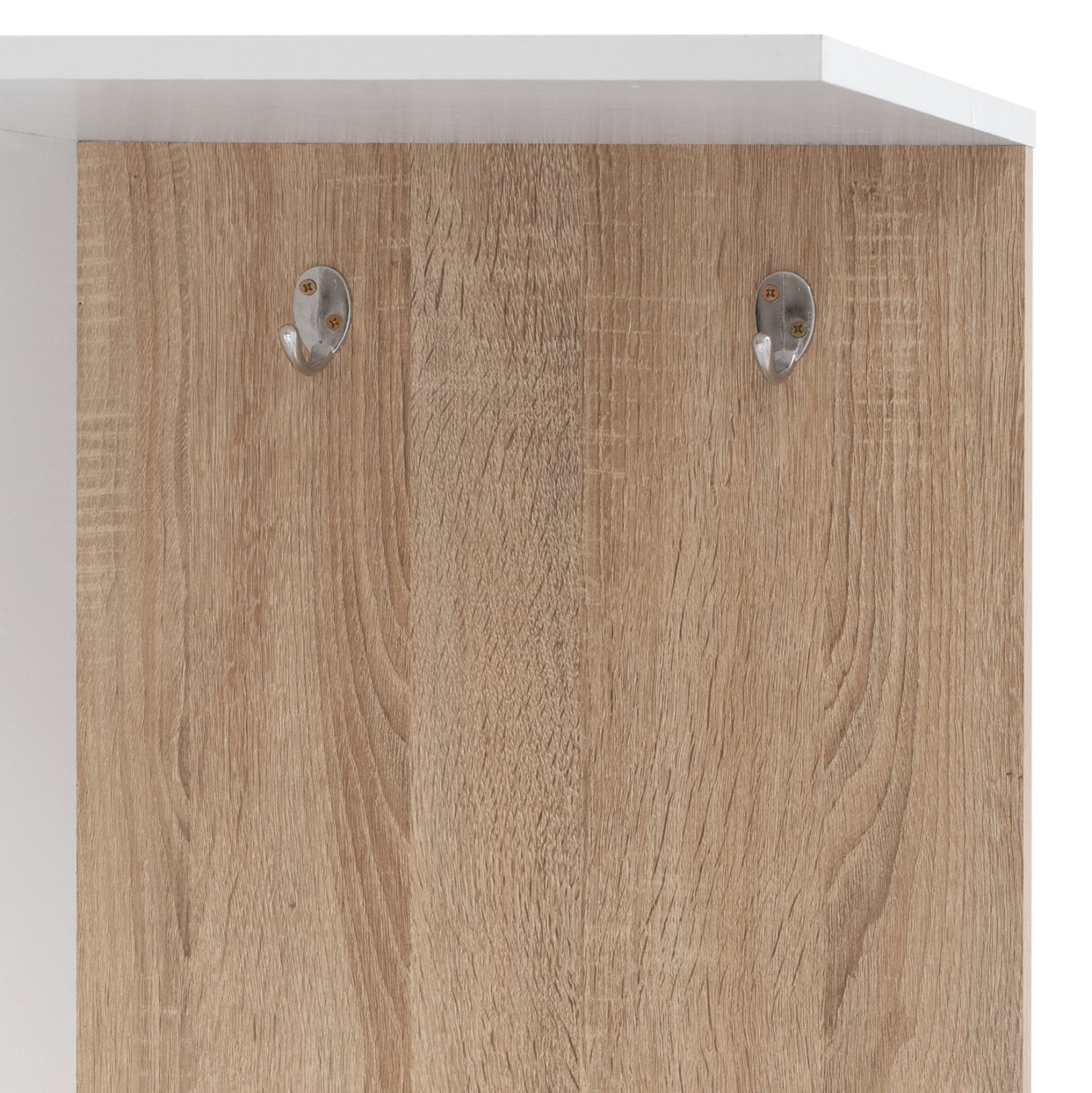 Έπιπλο εισόδου με ντουλάπια, κρεμάστρα, ράφια και ένα καθρέπτη, κατασκευασμένο από μελαμίνη σε λευκό και sonama χρώμα.