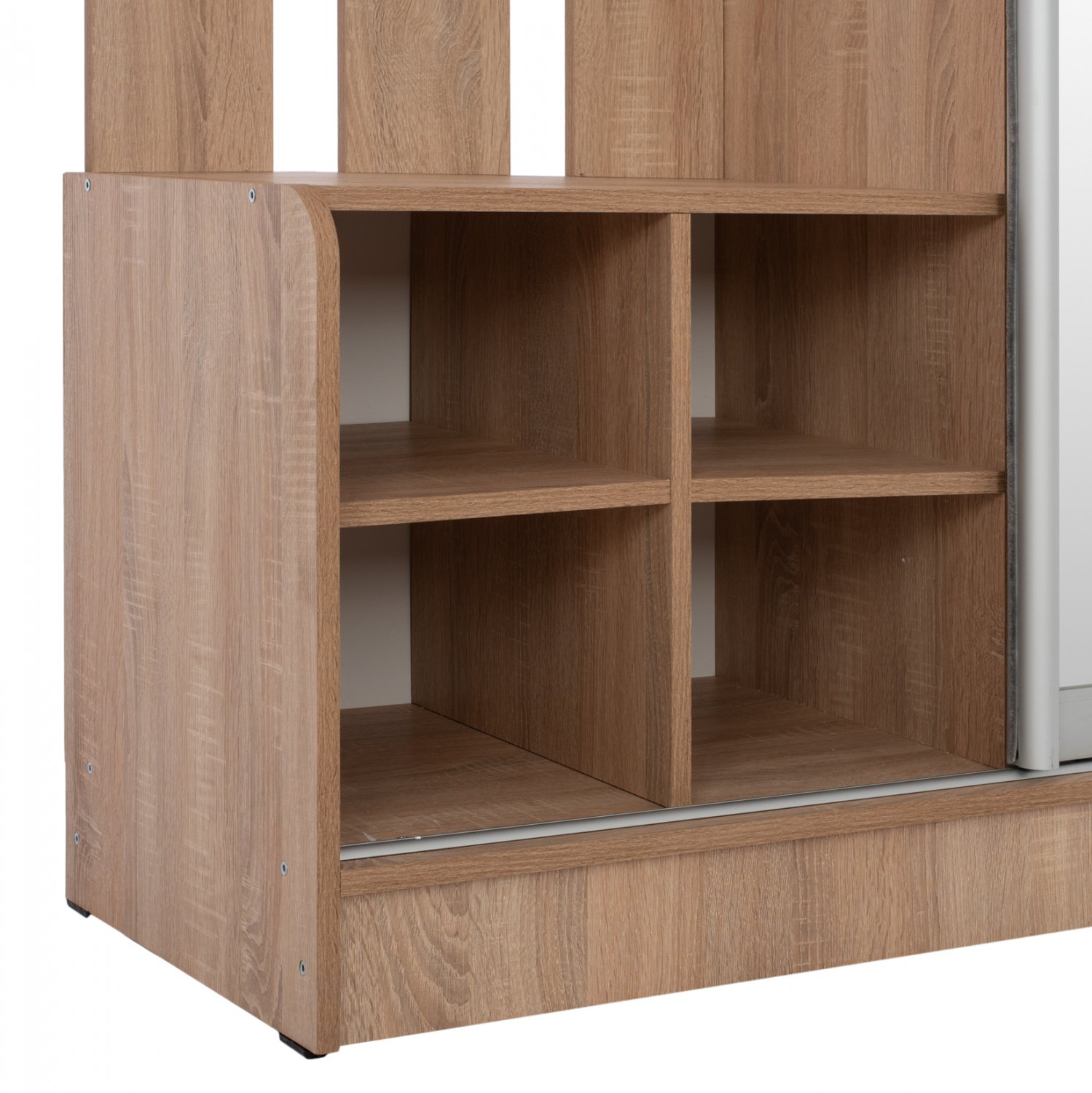 Μία σύνθεση επίπλου που συνδυάζει στη δεξιά πλευρά συρόμενη ντουλάπα με μεγάλο καθρέπτη εξωτερικά, ενώ εσωτερικά διαθέτει 1 ράφι στο επάνω μέρος και μια κάθετη συρόμενη προς τα έξω ράβδο κρέμασης, που διευκολύνει το κρέμασμα των ρούχων.