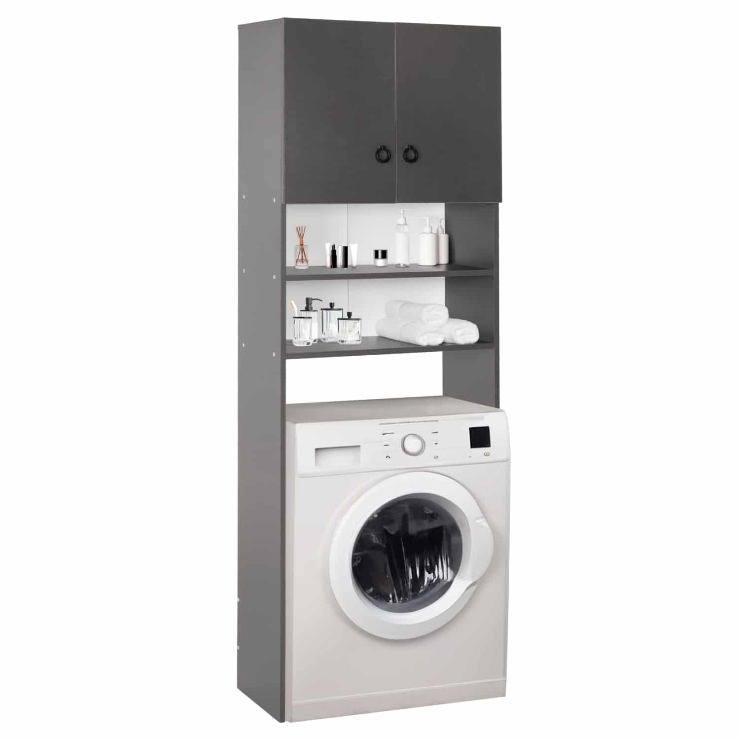 Σας παρουσιάζουμε το καινούριο έπιπλο για το πλυντήριο TERRY. Κατασκευασμένο από μελαμίνη σε όμορφο ΓΚΡΙ χρώμα, αποτελείται από ένα δίφυλλο ντουλάπι στο επάνω μέρος και 2 ανοιχτά ράφια στην μέση.