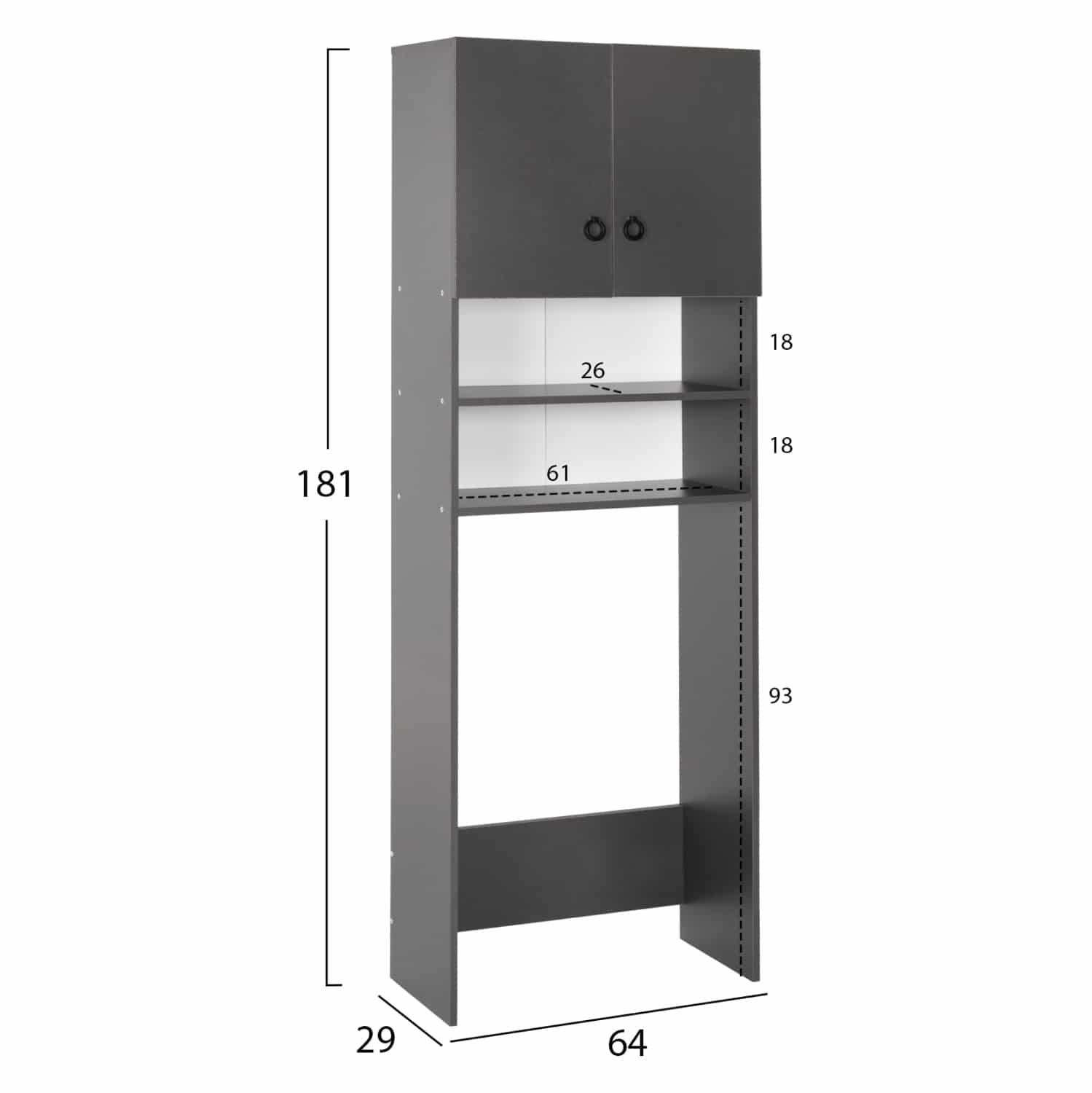 Διαστάσεις ραφιών (x2): 61x26x18Υ εκ.