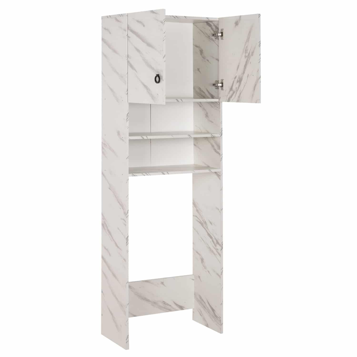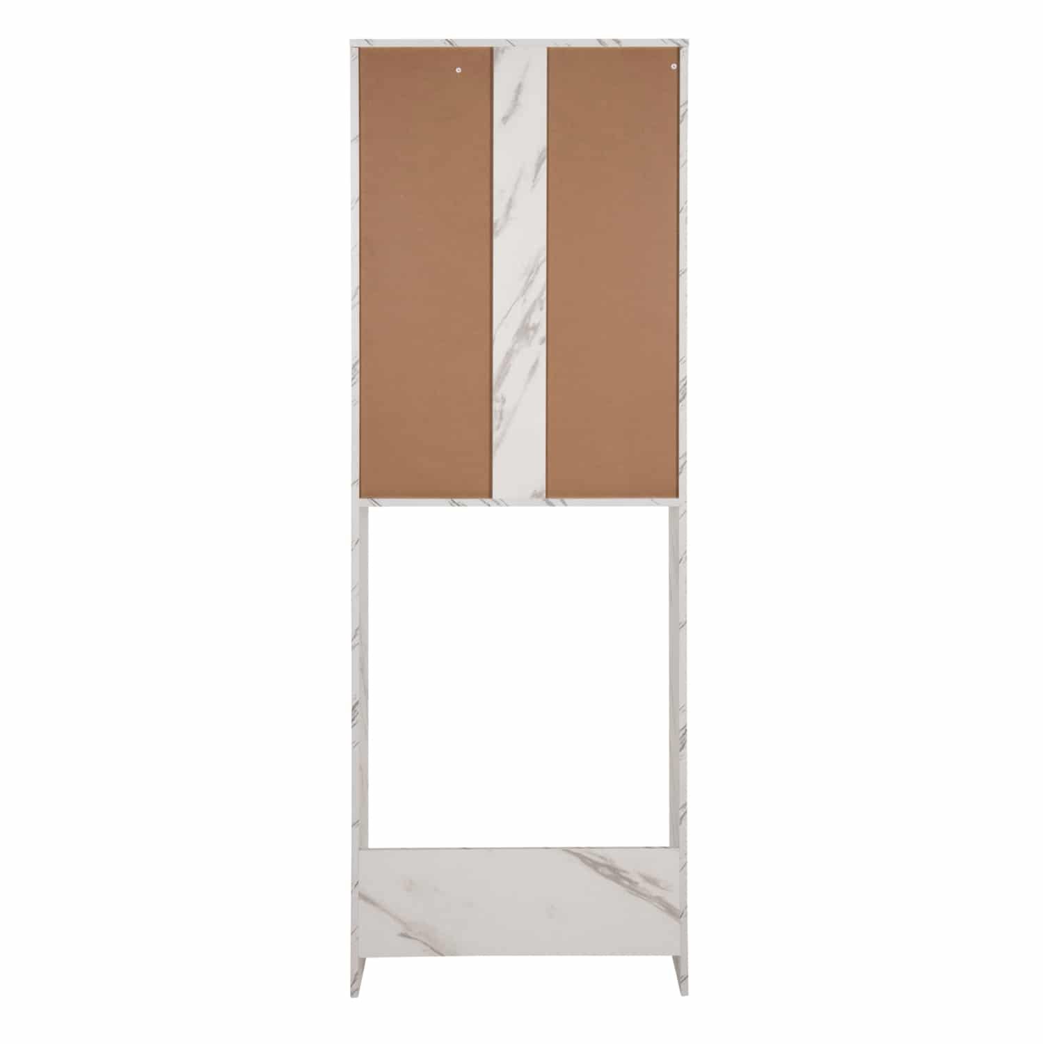 Σας παρουσιάζουμε το καινούριο έπιπλο για το πλυντήριο TERRY. Κατασκευασμένο από μελαμίνη σε όμορφο ΛΕΥΚΟ ΜΑΡΜΑΡΟ χρώμα, αποτελείται από ένα δίφυλλο ντουλάπι στο επάνω μέρος και 2 ανοιχτά ράφια στην μέση.