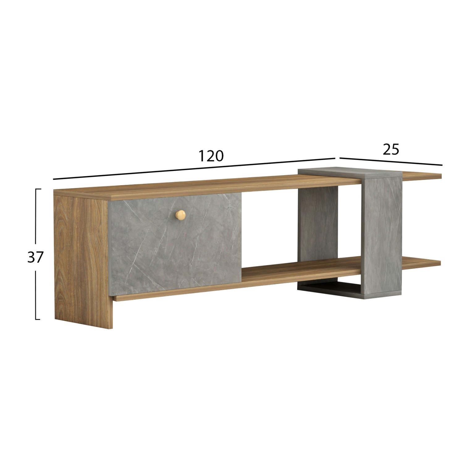 Το HENRIETTE είναι ένα μοντέρνο και λειτουργικό έπιπλο τηλεόρασης, που θα ομορφύνει το σαλόνι σας! Απευθύνεται σε όσους δεν έχουν μεγάλο χώρο μιας και δεν έχει ιδιαίτερα μεγάλες διαστάσεις αλλά σίγουρα το design του θα τραβήξει τα βλέμματα. Κάτω από την κύρια επιφάνεια του επίπλου υπάρχει ένα ντουλάπι που ανοίγει προς τα κάτω, και όλο το υπόλοιπο είναι ανοιχτός χώρος αποθήκευσης. Πρόκειται για μια κομψή και λιτή πρόταση για το σαλόνι σας σε διχρωμία ΚΑΡΥΔΙ και γκριζωπής όψης πέτρας!
