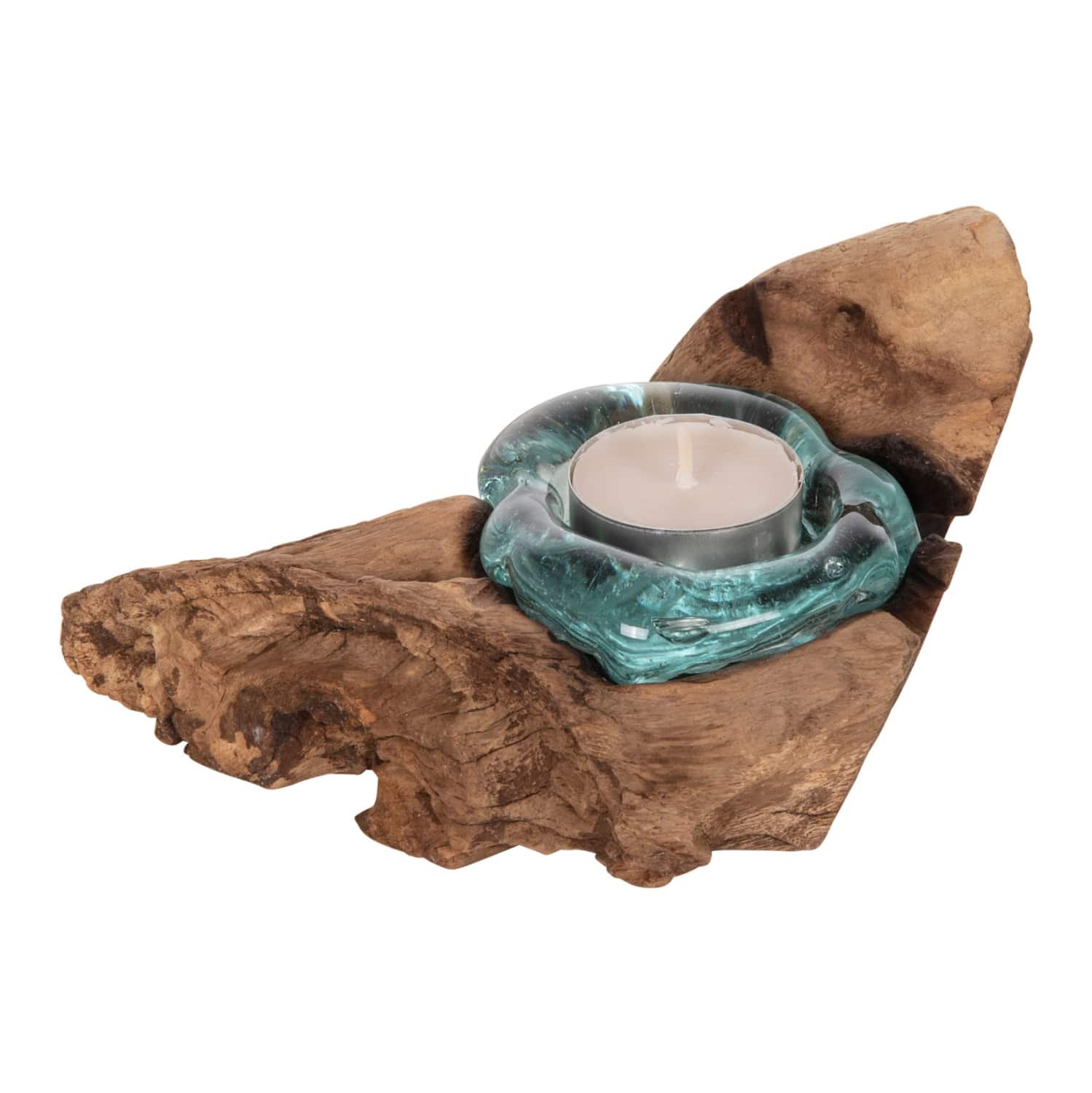 Το επιτραπέζιο διακοσμητικό HM4283 είναι μια βάση για 1 κεράκι ρεσό κατασκευασμένη από μασίφ ξύλο ΤΕΑΚ. Η βάση για τo ρεσό είναι από γυαλί. Οι οπαδοί του ρουστίκ στυλ στην διακόσμηση θα ενθουσιαστούν με αυτή την πρόταση.
