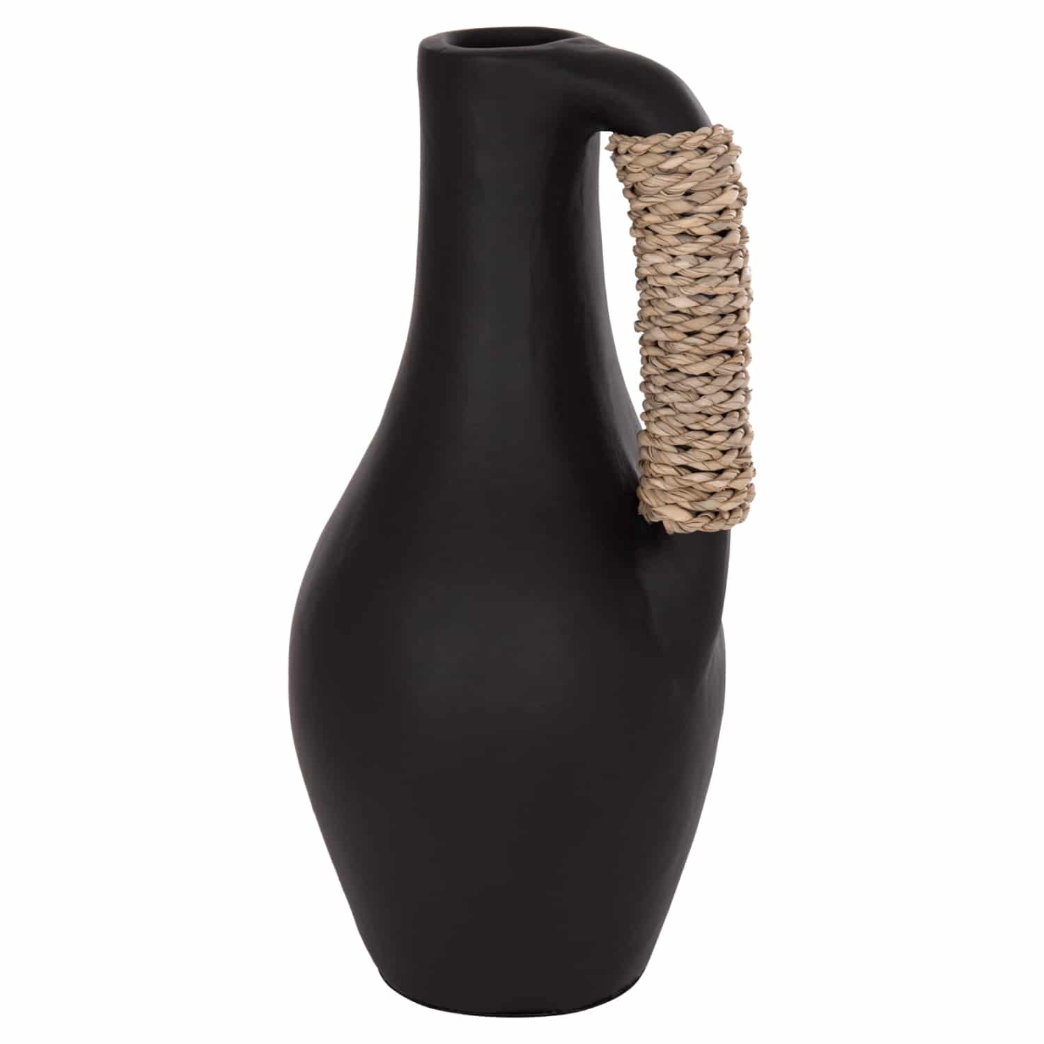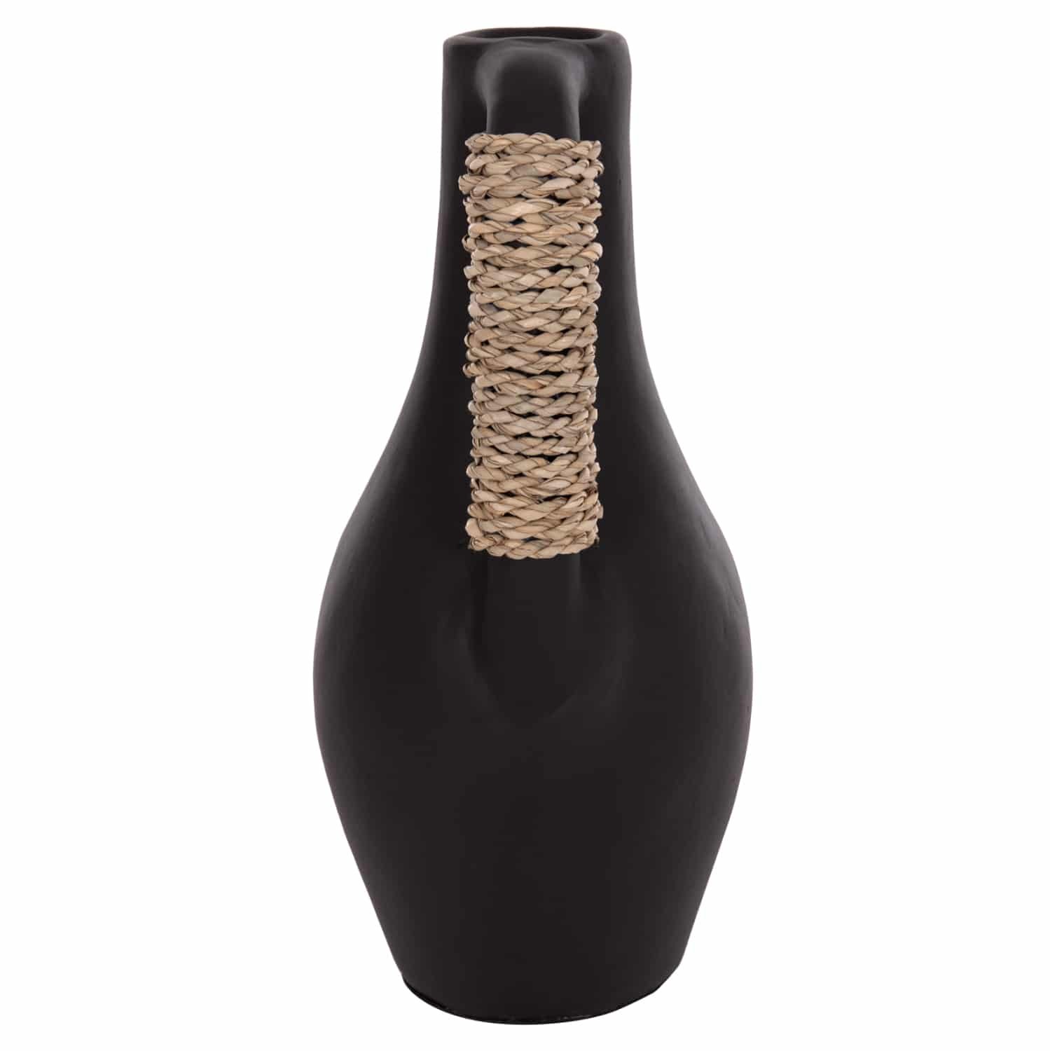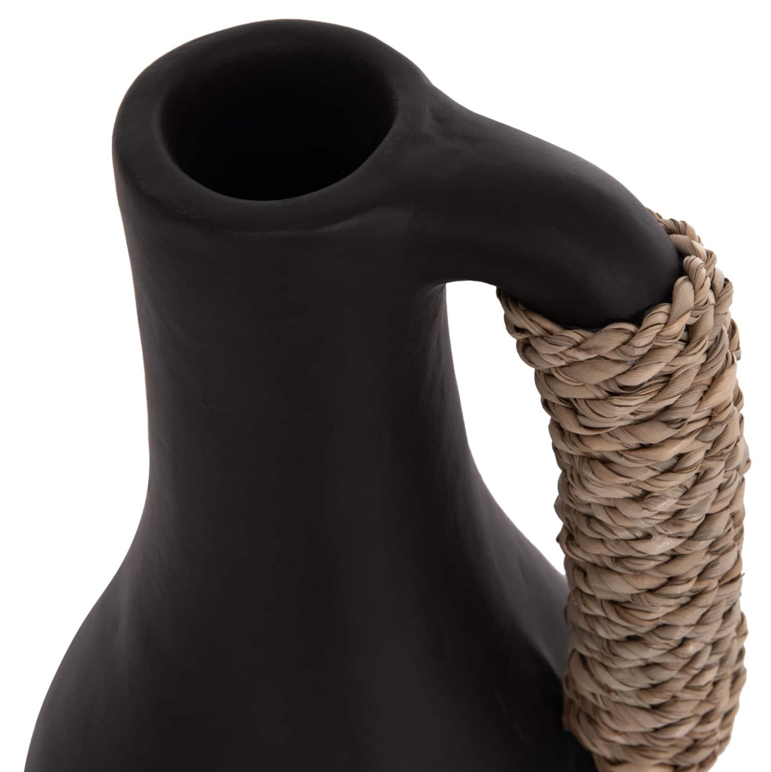 Το επιτραπέζιο χειροποίητο διακοσμητικό βάζο CAMMER είναι κατασκευασμένο εξολοκλήρου από τερακότα σε ΜΑΥΡΟ χρώμα ενώ διαθέτει διακοσμητική πλέξη από seagrass στο χερούλι που διαθέτει. Ιδανικό για πληθώρα χώρων, τόσο για το σπίτι, όσο και για επαγγελματικούς χώρους.