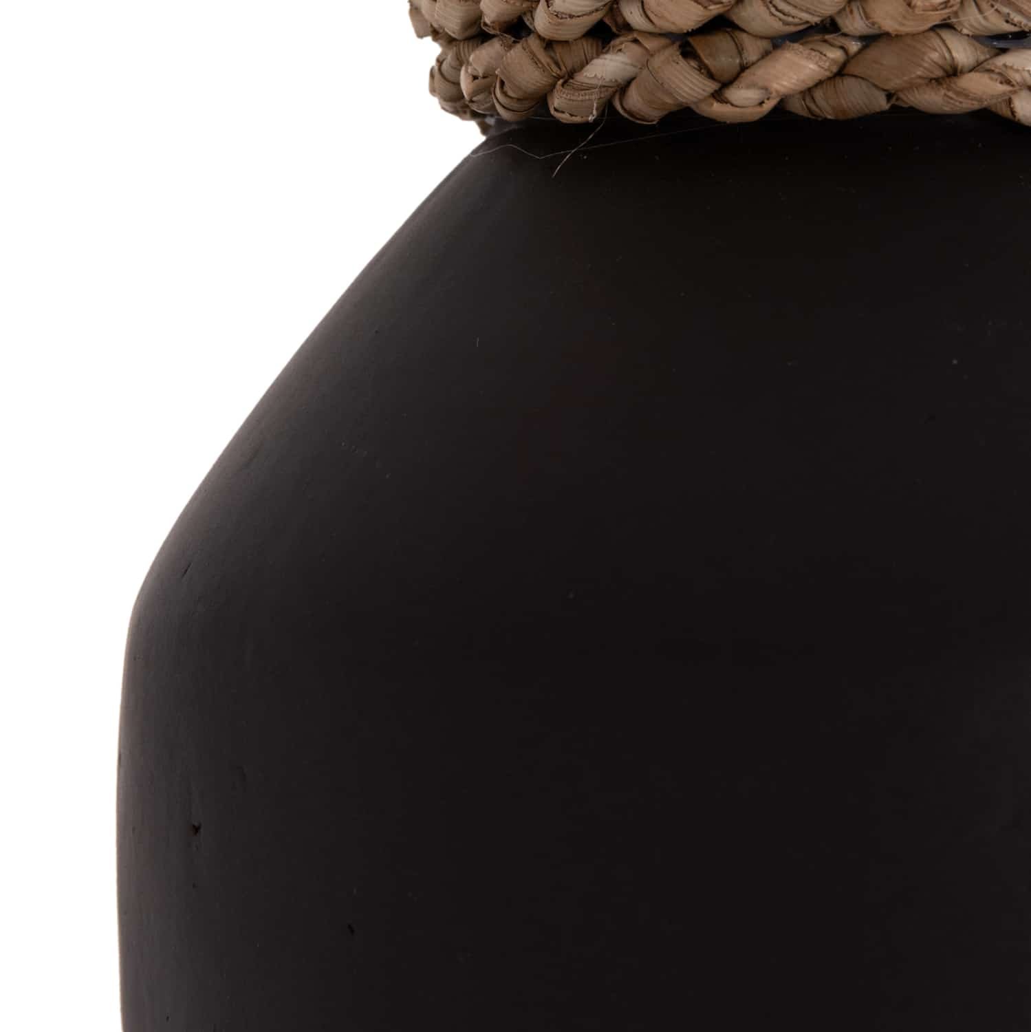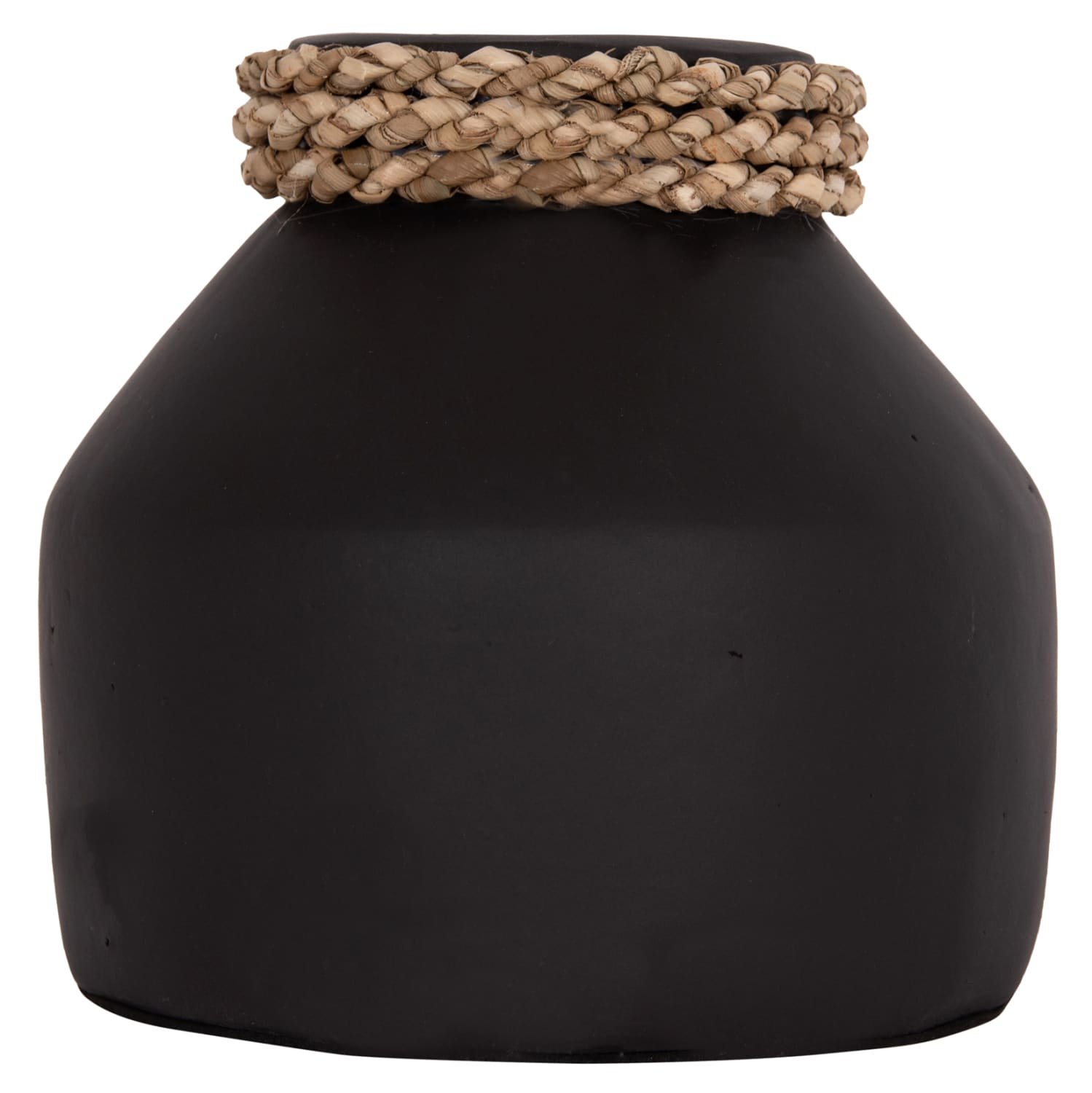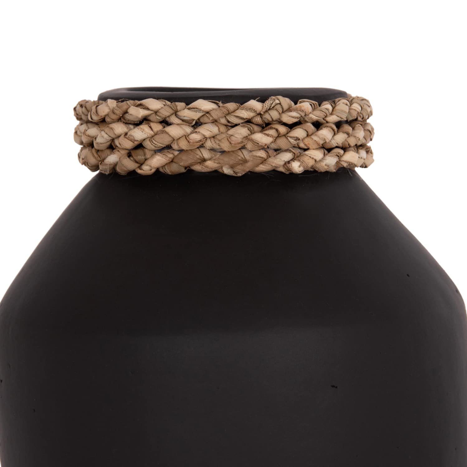 Το επιτραπέζιο χειροποίητο διακοσμητικό βάζο CAMMER είναι κατασκευασμένο εξολοκλήρου από τερακότα σε ΜΑΥΡΟ χρώμα ενώ διαθέτει διακοσμητική πλέξη από seagrass περιμετρικά στον «λαιμό» του βάζου. Ιδανικό για πληθώρα χώρων, τόσο για το σπίτι, όσο και για επαγγελματικούς χώρους.