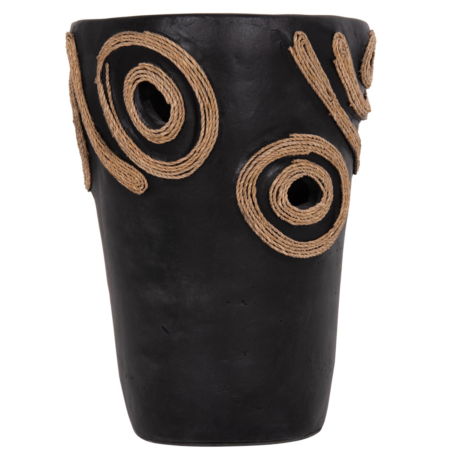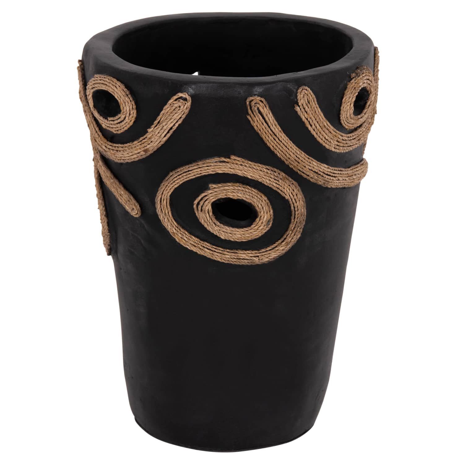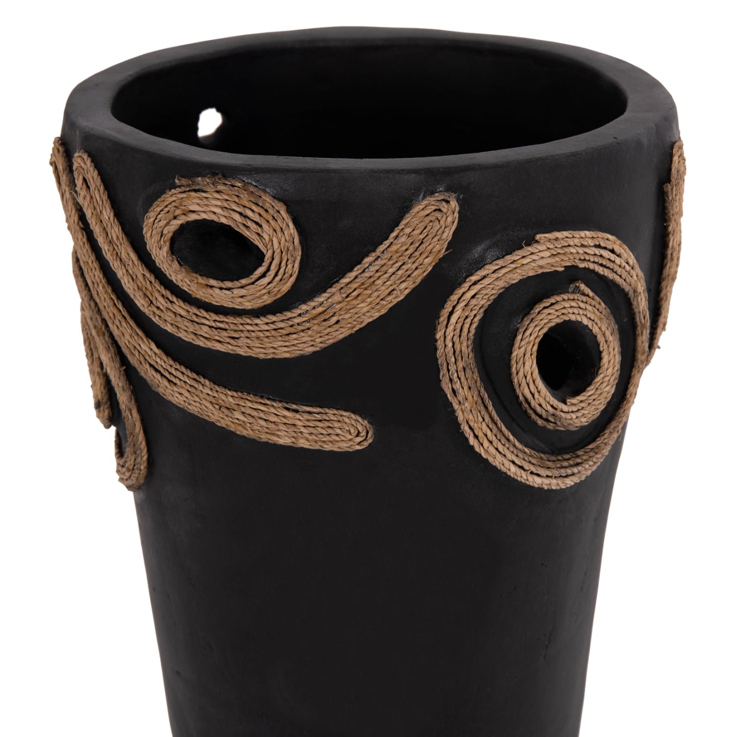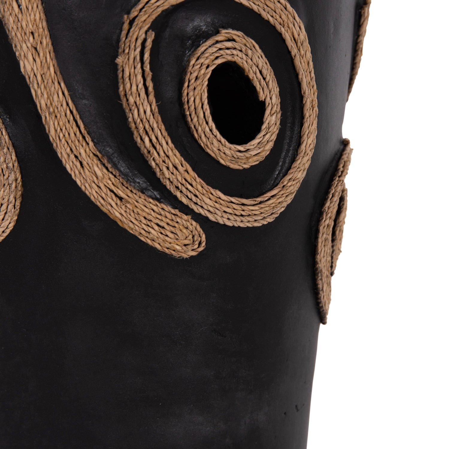 Το επιτραπέζιο χειροποίητο διακοσμητικό βάζο DEAN είναι λιτό σε κλασσικό σχέδιο. Είναι κατασκευασμένο εξολοκλήρου από τερακότα σε ΜΑΥΡΟ χρώμα ενώ διαθέτει διακοσμητικά σχέδια με σχοινί από ίνες φοίνικα κολλημένο στις πλευρές του βάζου. Ιδανικό για πληθώρα χώρων, τόσο για το σπίτι, όσο και για επαγγελματικούς χώρους.