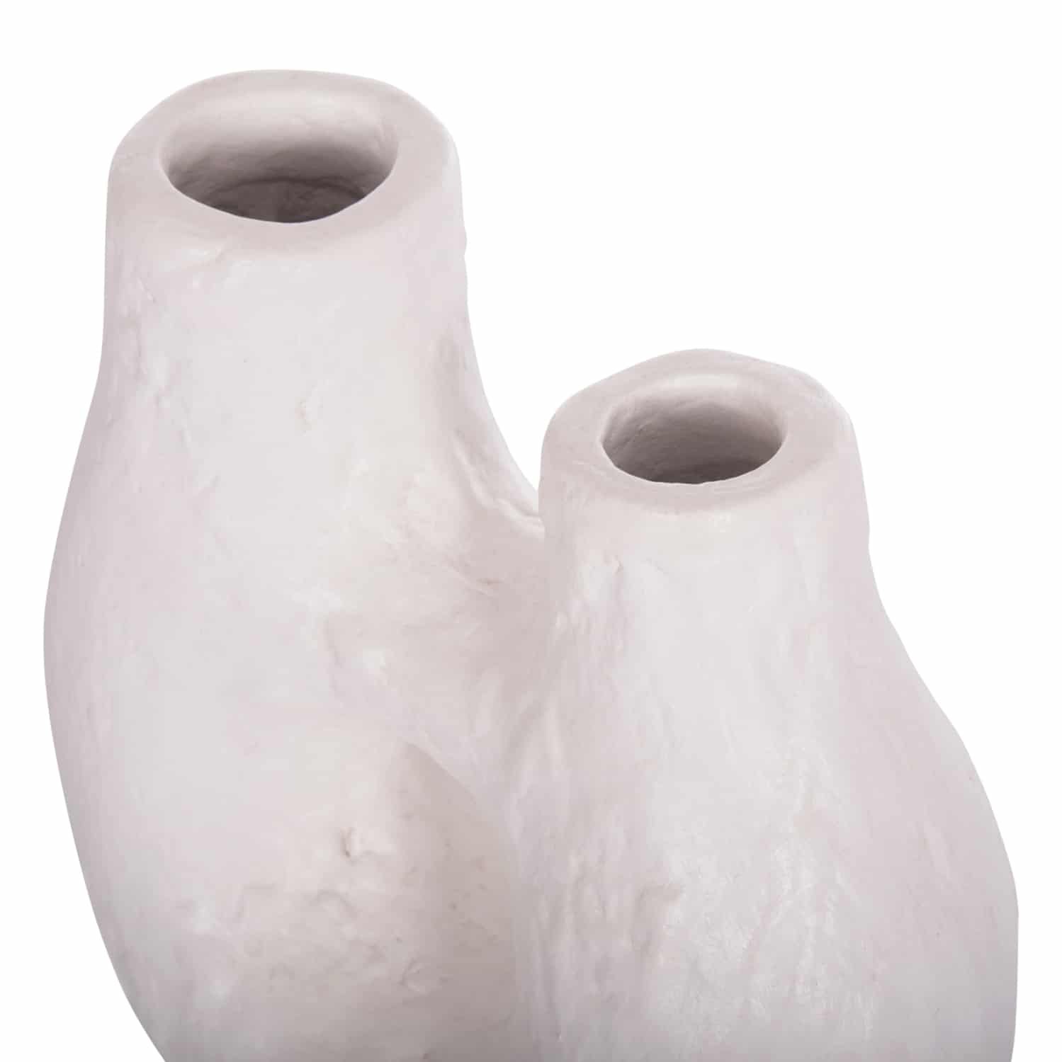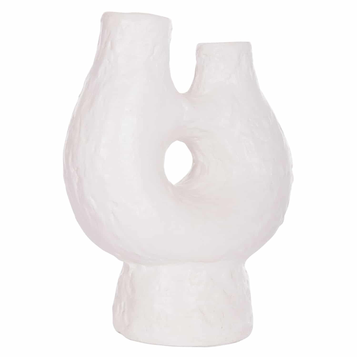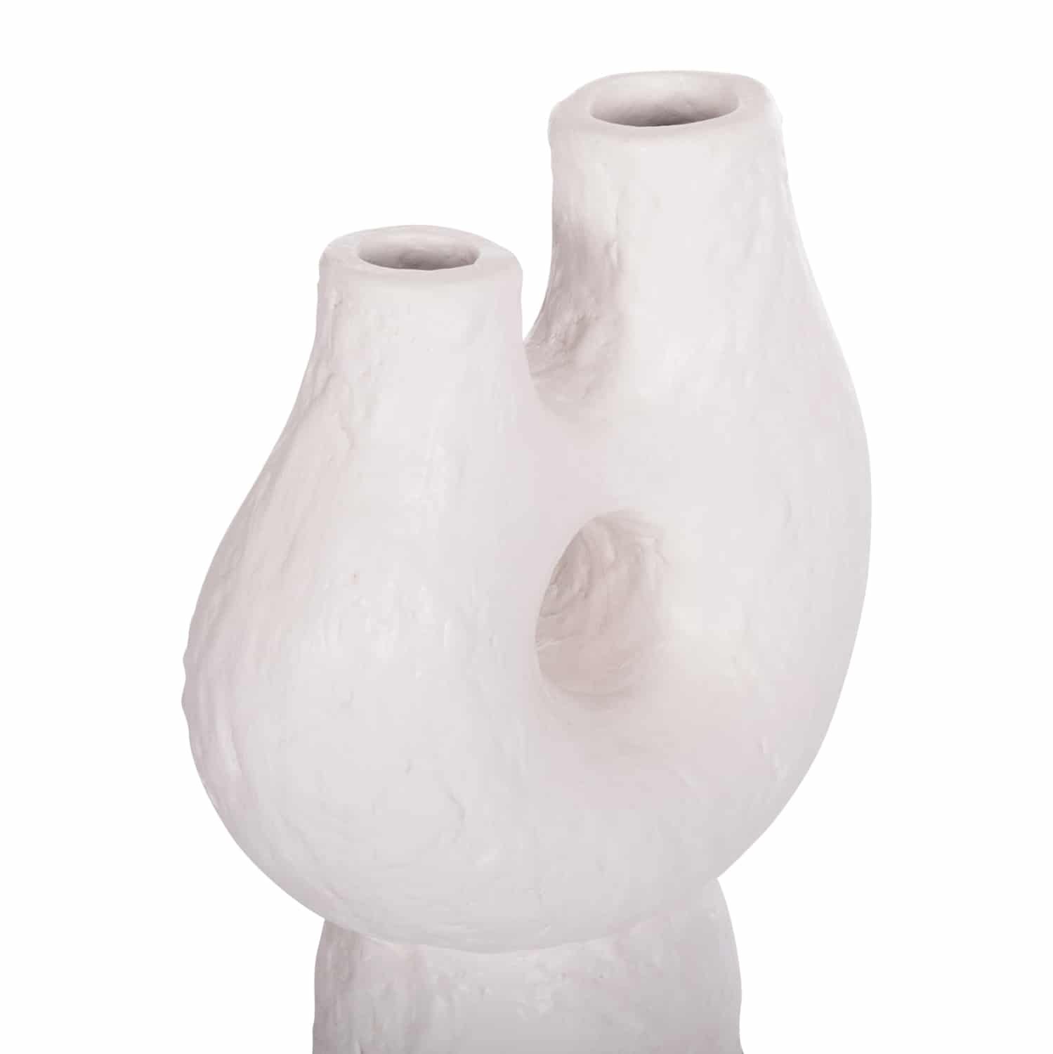 Το χειροποίητο επιτραπέζιο διακοσμητικό βάζο NAMENTIS με δύο στόμια είναι ένα πολύ ιδιαίτερο διακοσμητικό στοιχείο για κάθε χώρο. Είναι κατασκευασμένο εξολοκλήρου από τερακότα με σαγρέ υφή σε ΛΕΥΚΟ χρώμα, ακολουθώντας την σύγχρονη τάση στην εσωτερική διακόσμηση. Ιδανικό για πληθώρα χρήσεων και χώρων.