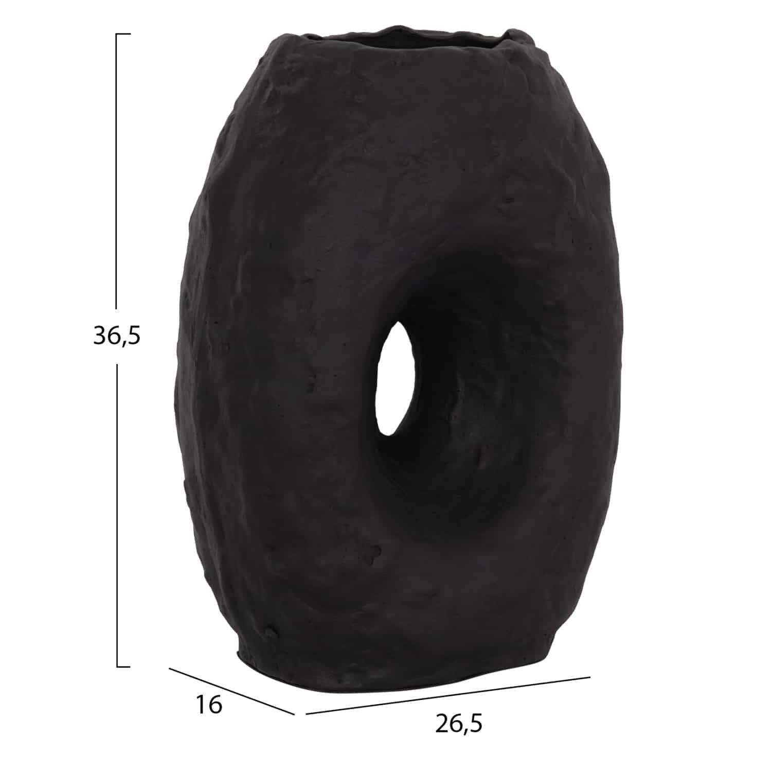 Το χειροποίητο επιτραπέζιο διακοσμητικό βάζο NAMENTIS είναι ένα πολύ ιδιαίτερο διακοσμητικό στοιχείο για κάθε χώρο. Είναι κατασκευασμένο εξολοκλήρου από τερακότα με σαγρέ υφή σε ΜΑΥΡΟ χρώμα, ακολουθώντας την σύγχρονη τάση στην εσωτερική διακόσμηση. Ιδανικό για πληθώρα χρήσεων και χώρων.