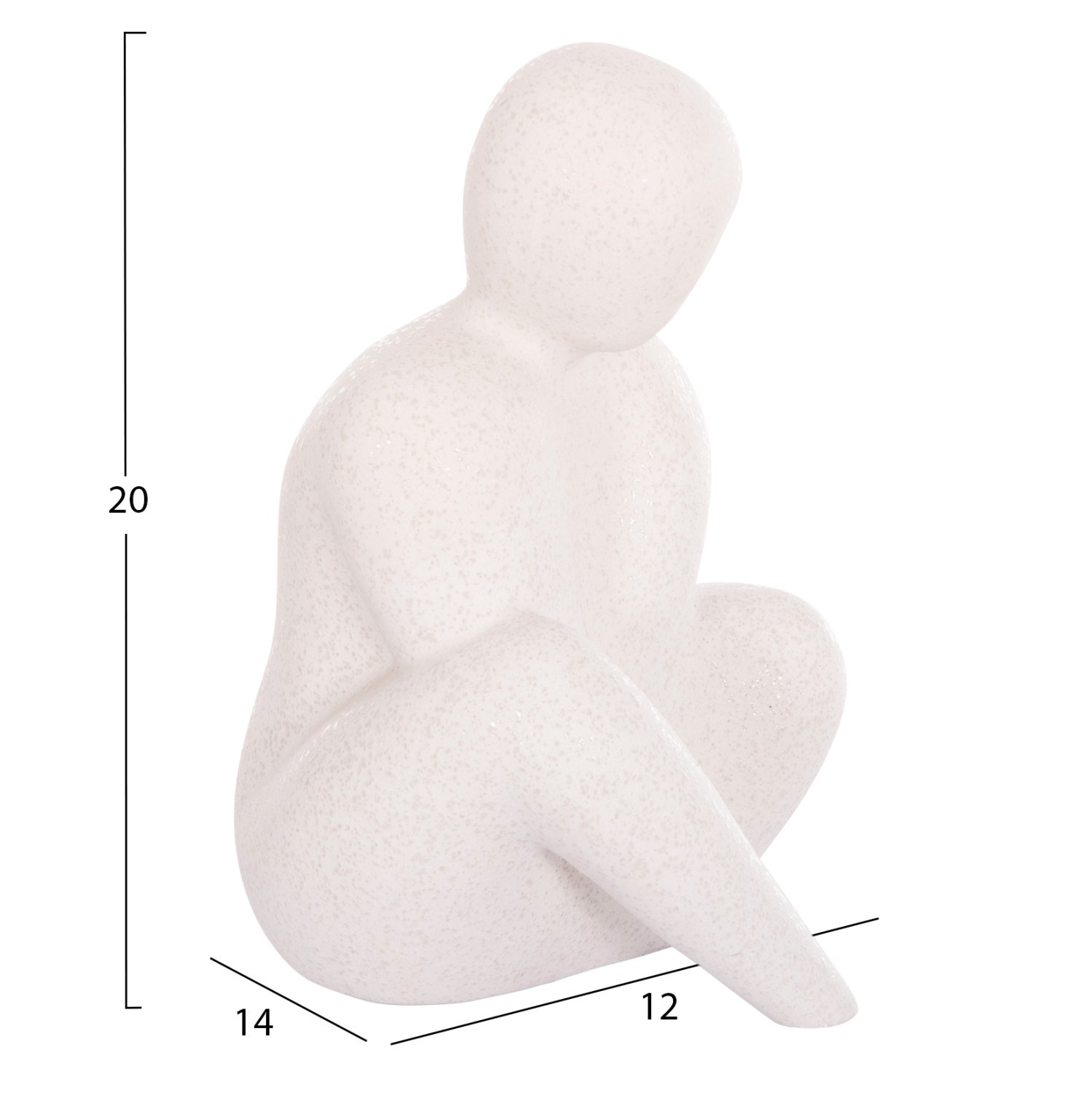 Το HM4595 ανήκει στην καινούργια μας σειρά επιτραπέζιων διακοσμητικών «HUMANS». Πρόκειται για μια καθιστή ανθρώπινη φιγούρα σε ΥΠΟΛΕΥΚΟ χρώμα που είναι κατασκευασμένη από κεραμικό υλικό με ειδική επεξεργασία κρυσταλλοποίησης, που δίνει την όψη και την υφή κρυστάλλου στα κεραμικά αντικείμενα, και θα αναβαθμίσει αισθητικά το σπίτι σας ή τον επαγγελματικό σας χώρο.