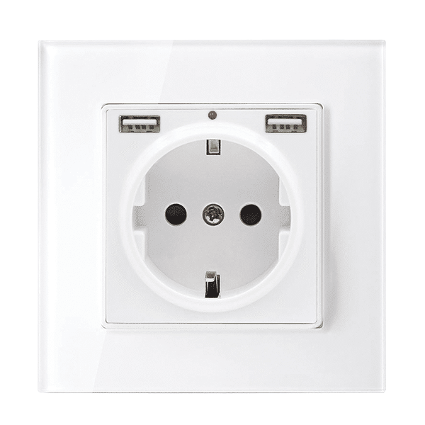 Λειτουργικότητα και κομψότητα σε ένα: η πρίζα τύπου Schuko της Elmark με γυάλινο λευκό πλαίσιο και δύο θύρες USB προσφέρει την ιδανική λύση για σύγχρονες εγκαταστάσεις. Επιτρέπει την ταυτόχρονη φόρτιση συσκευών χωρίς αντάπτορες και περιλαμβάνει κουτί τοποθέτησης για γυψοσανίδα, εξασφαλίζοντας εύκολη και καθαρή εγκατάσταση.