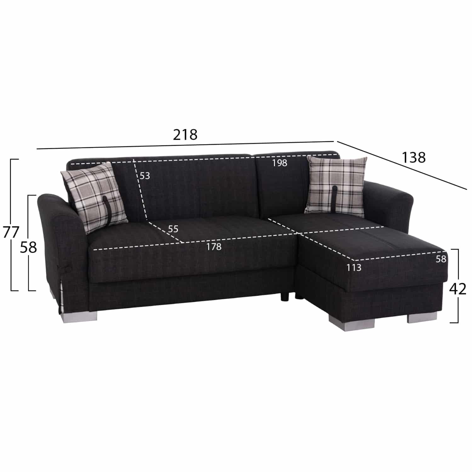 ΓΩΝΙΑΚΟΣ ΚΑΝΑΠΕΣ-ΚΡΕΒΑΤΙ ΜΕ ΑΠΟΘ. ΧΩΡΟ BRONKO HM3291.01 ΑΝΘΡΑΚΙ ΥΦΑΣΜΑ 218x138x77Y