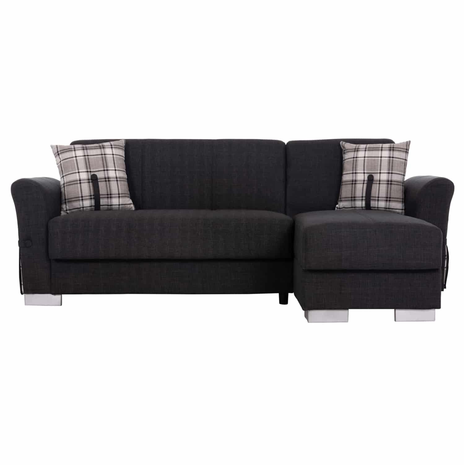 Ο BRONKO είναι ένας τριθέσιος γωνιακός και αναστρέψιμος καναπές-κρεβάτι που μπορεί να προσαρμοστεί ανάλογα με τις απαιτήσεις του δικού σας χώρου αποτελώντας μία έξυπνη και πρακτική πρόταση για εξοικονόμηση χώρου στο γραφείο ή το σπίτι. Η επένδυσή του είναι με εξαιρετικής ποιότητας ΑΝΘΡΑΚΙ ύφασμα, ενώ τα μπράτσα είναι φαρδιά τόσο-όσο για να προσφέρουν άνεση και στήριξη. Επίσης, έρχεται με δύο μαξιλαράκια σε όμορφο ανοιχτό γκρι χρωματισμό.