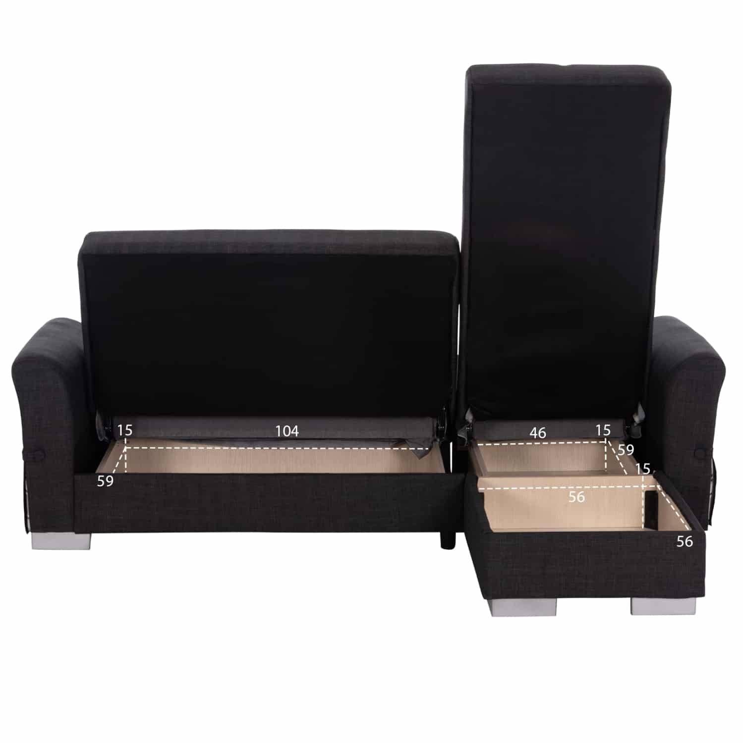 Η μετατροπή του σε κρεβάτι γίνεται με έναν εύχρηστο μηχανισμό «κλικ-κλακ» ο οποίος μάλιστα αφήνει το «καπάκι» ανοιχτό ώστε να μπορείτε εύκολα και με ασφάλεια να αποθηκεύετε ή να παίρνετε τα πράγματά σας από τους αποθηκευτικούς χώρους, οι οποίοι πάντα είναι χρήσιμοι, ειδικά σε φοιτητικά σπίτια. Τέλος, τα πόδια του καναπέ είναι χαμηλά σε ΑΣΗΜΙ χρώμα. Ένας καναπές που αποτελεί ιδανική επιλογή για εσάς που αναζητάτε κάτι κομψό, λειτουργικό και ποιοτικό.