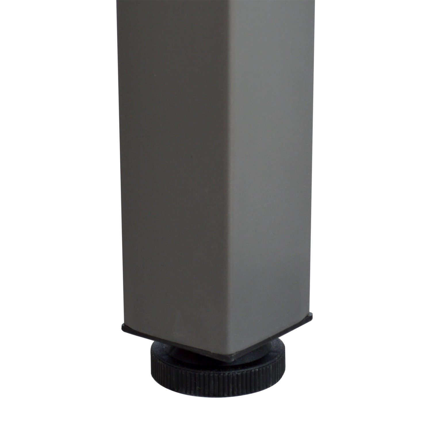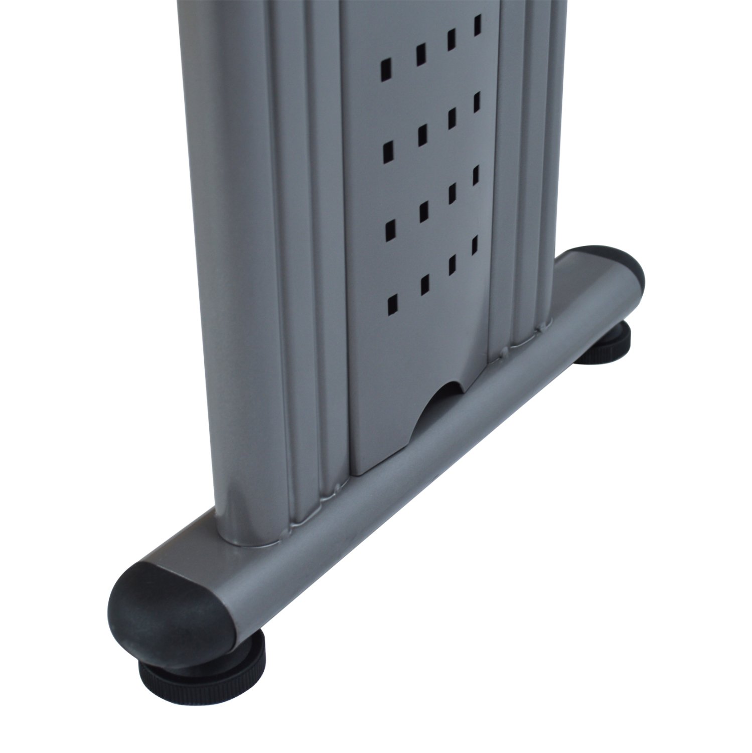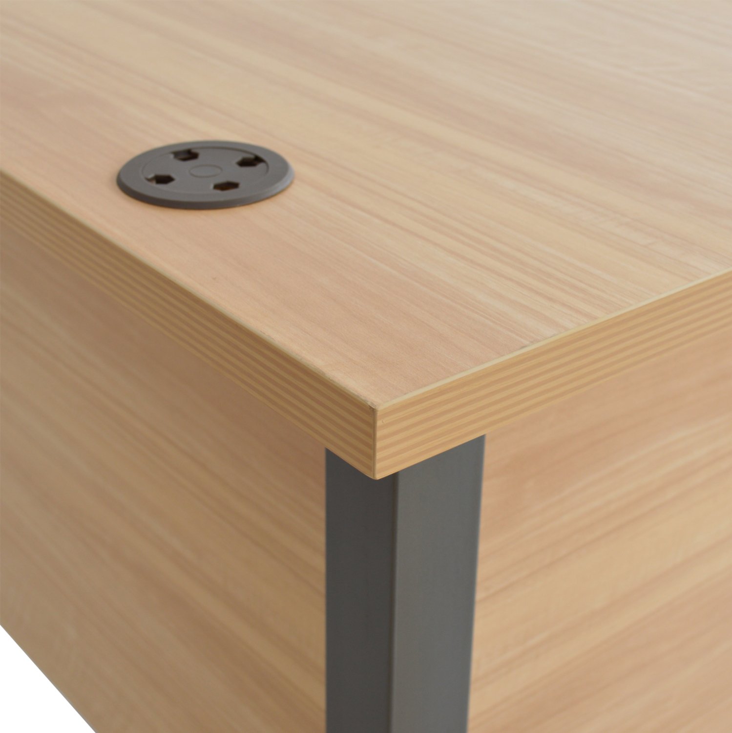 Με δύο εισόδους καλωδίων και πόδια μεταλλικά 3τμχ(στις 3 γωνίες του γραφείου) σε χρώμα γκρι.