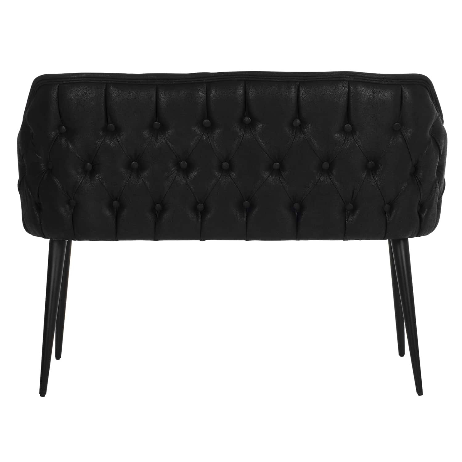 Καναπές διθέσιος «CARLOS” σε ΜΑΥΡΗ απόχρωση με μαύρα ξύλινα πόδια. Ένας καναπές που δίνει αέρα πολυτέλειας σε οποιοδήποτε ΕΠΑΓΓΕΛΜΑΤΙΚΟ χώρο. Λιτός, ποιοτικός και κομψός σίγουρα θα τραβήξει τα βλέμματα. Το πίσω μέρος της πλάτης με τον καπιτονέ σχεδιασμό προσφέρει έναν ιδιαίτερο χαρακτήρα στον καναπέ και επιβεβαιώνει την εντύπωση της πολυτέλειας που σου δίνει με την πρώτη κιόλας ματιά.