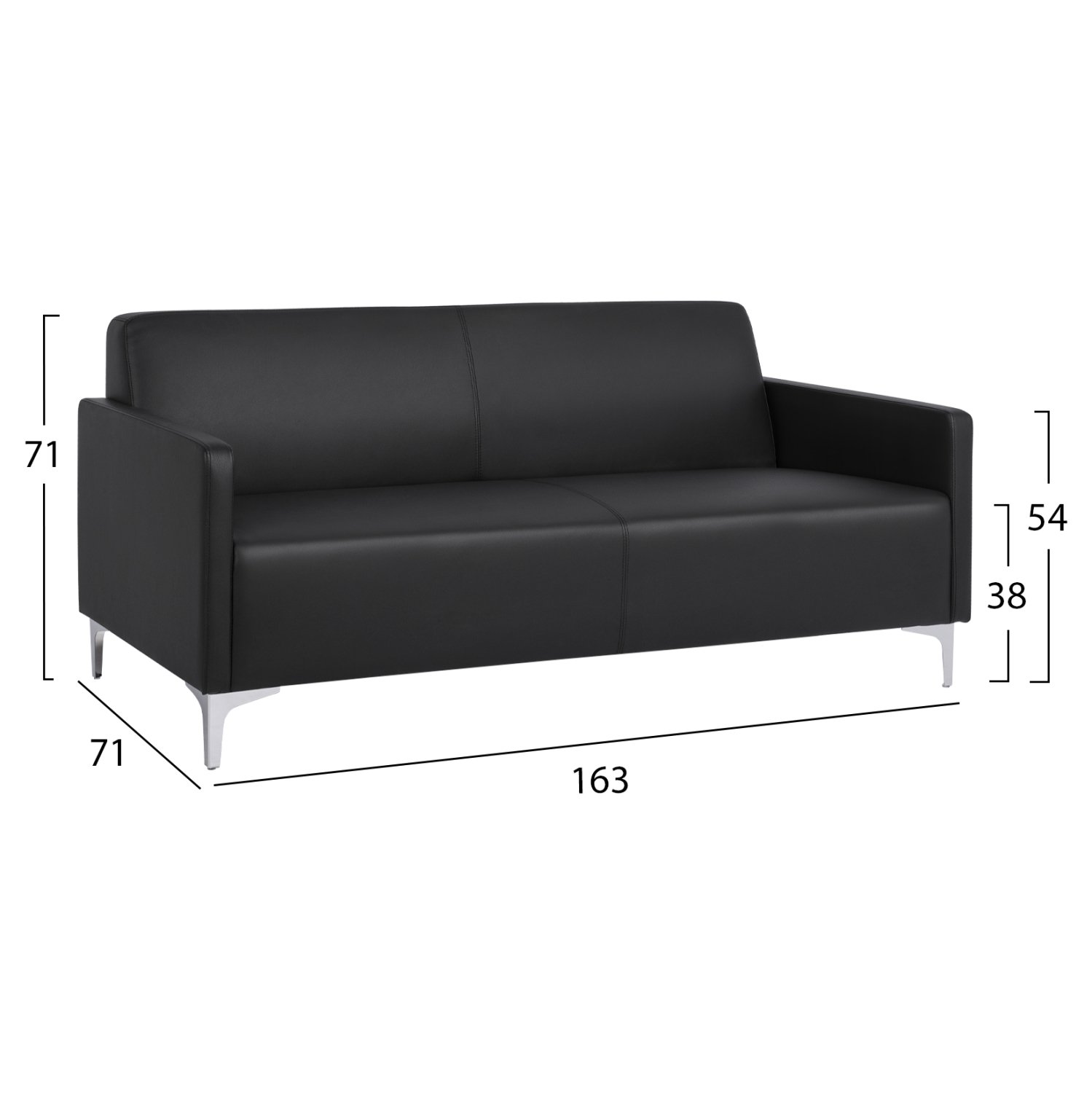 Καναπές τριθέσιος με τεχνόδερμα σε μαύρη απόχρωση 163x71x71Υ εκ.