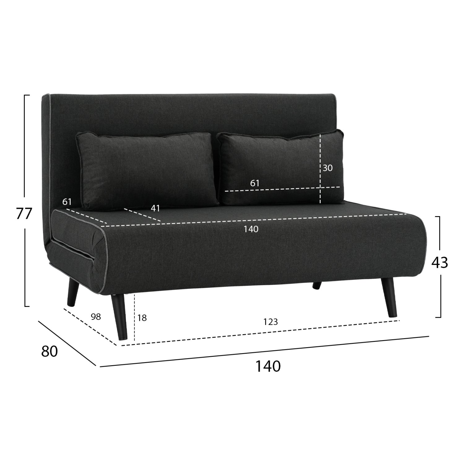 ΚΑΝΑΠΕΣ ΚΡΕΒΑΤΙ 2 ΑΤΟΜΩΝ ASMA HM3077.03 ΣΚΟΥΡΟ ΓΚΡΙ ΥΦΑΣΜΑ 140x80x77Yεκ.