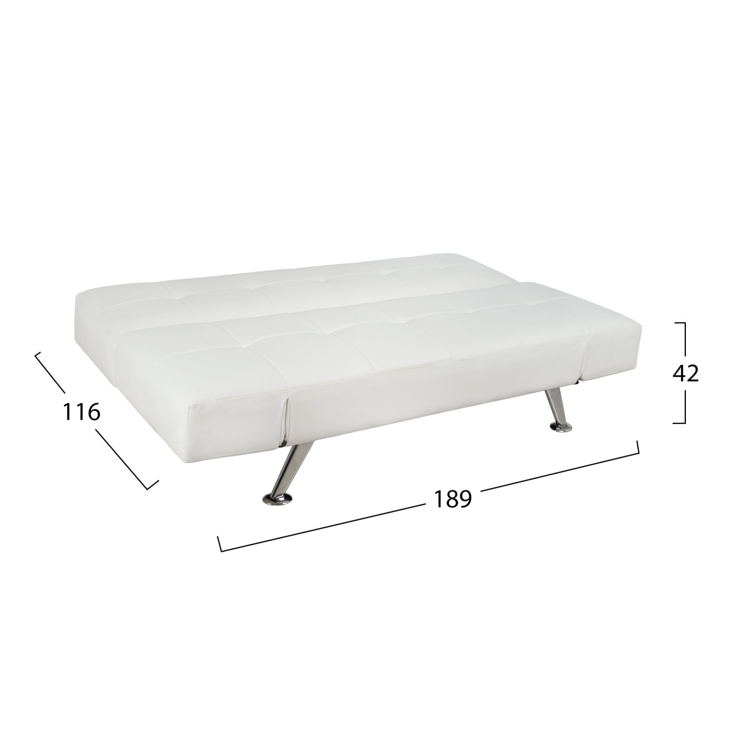 Καναπές κρεβάτι, επενδεδυμένος με τεχνόδερμα σε λευκή απόχρωση 189x93x82 εκ.