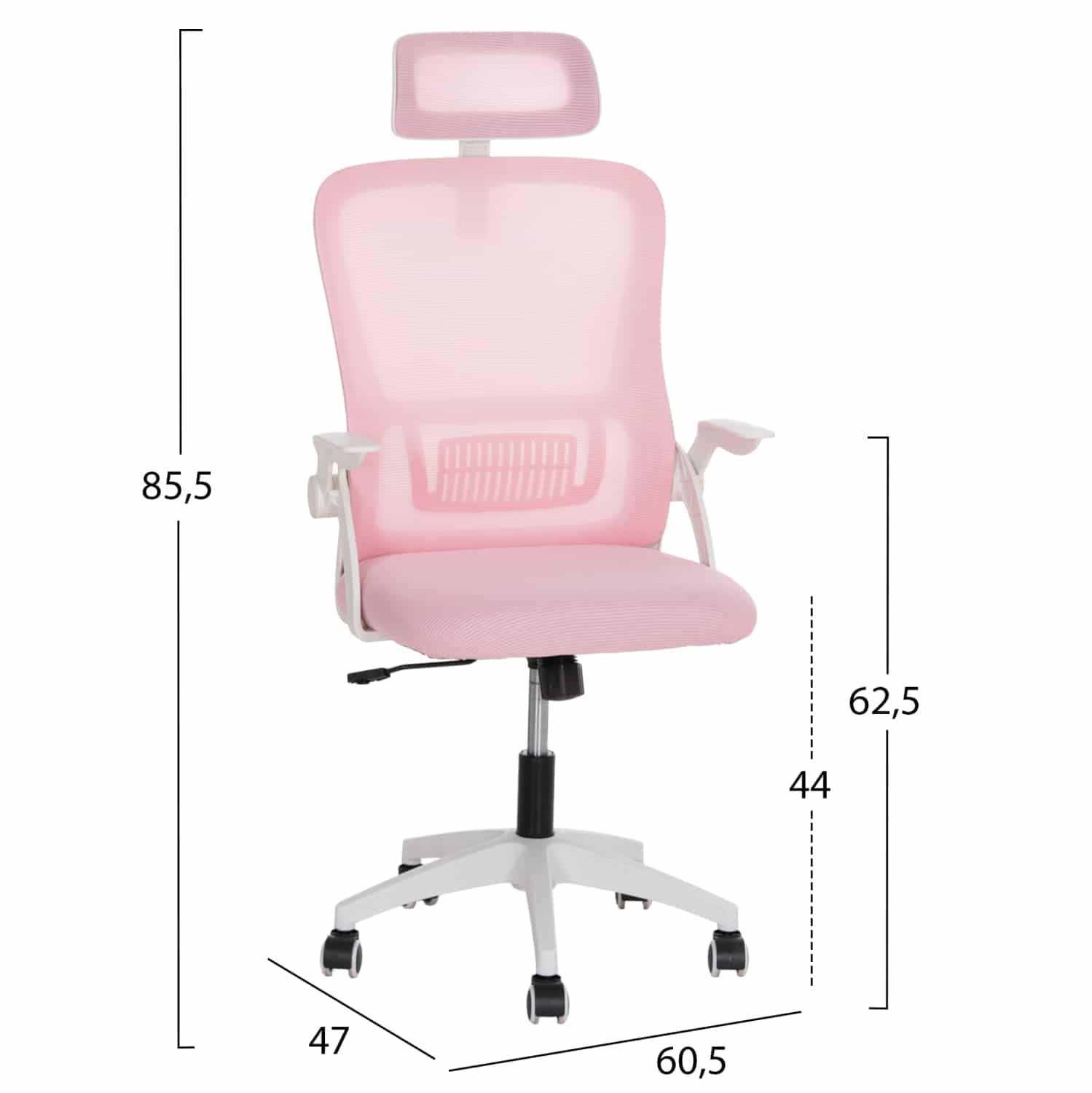 ΚΑΡΕΚΛΑ ΓΡΑΦΕΙΟΥ BLAZER HM1205.04 ΡΟΖ MESH-ΛΕΥΚΟΣ ΣΚΕΛΕΤΟΣ NYLON 60,5x47x85,5Υεκ.