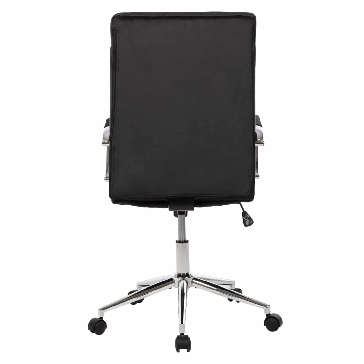 Διευθυντική καρέκλα γραφείου “JOSEF” σε ΜΑΥΡΟ χρώμα. Μια όμορφη καρέκλα γραφείου με ψηλά επίπεδα inox μπράτσα με στρογγυλεμένες γωνίες, επενδυμένα με βελούδινο ύφασμα. Η πλάτη είναι άνετη και ψηλή με «μαξιλάρι» από αφρώδη υλικά για άνεση κατά την χρήση και υποστηρίζει ολόκληρο τον κορμό σας, ενώ είναι επενδυμένη με βελούδινο ύφασμα, όπως επίσης και το φαρδύ και αναπαυτικό κάθισμα με την αναπαυτική επιφάνεια. Η inox γυαλιστερή βάση και η ανάρτηση με την ρύθμιση ύψους προσθέτουν μια αίσθηση πολυτέλειας που είναι πάντα ευπρόσδεκτη για κάθε χώρο, ενώ ο μηχανισμός της καρέκλας με τον καλαίσθητο μεταλλικό μοχλό, προσφέρει ρύθμιση ανάκλισης, για άνετη και ευχάριστη πολύωρη χρήση! Ιδανική για επαγγελματικούς χώρους κυρίως, αλλά ακόμα και για το γραφείο σας στο σπίτι εάν περνάτε αρκετές ώρες στον υπολογιστή και θέλετε μια όμορφη και πλούσια καρέκλα γραφείου.