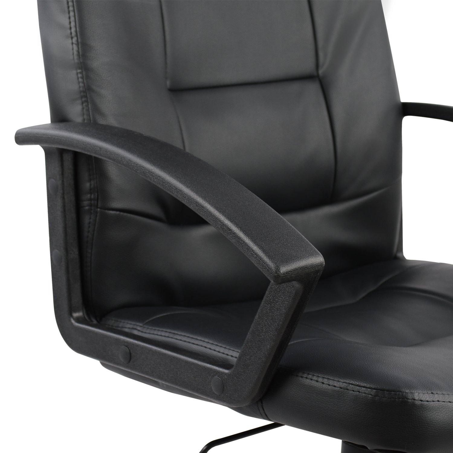 Διευθυντική καρέκλα γραφείου “SIVANA” σε μαύρο χρώμα. Μια «πλούσια» καρέκλα γραφείου με ψηλά μπράτσα με έντονη κλίση. Η πλάτη είναι ψηλή με πλούσια στρώση από αφρώδη υλικά για άνεση κατά την χρήση και υποστηρίζει ολόκληρο τον κορμό σας, ενώ είναι επενδυμένη με υψηλής ποιότητας PU δέρμα , όπως επίσης και το φαρδύ και αναπαυτικό κάθισμα με την αναπαυτική επιφάνεια. Η βάση είναι μαύρη σε σχήμα «αστέρι» με επίσης μαύρα ροδάκια.