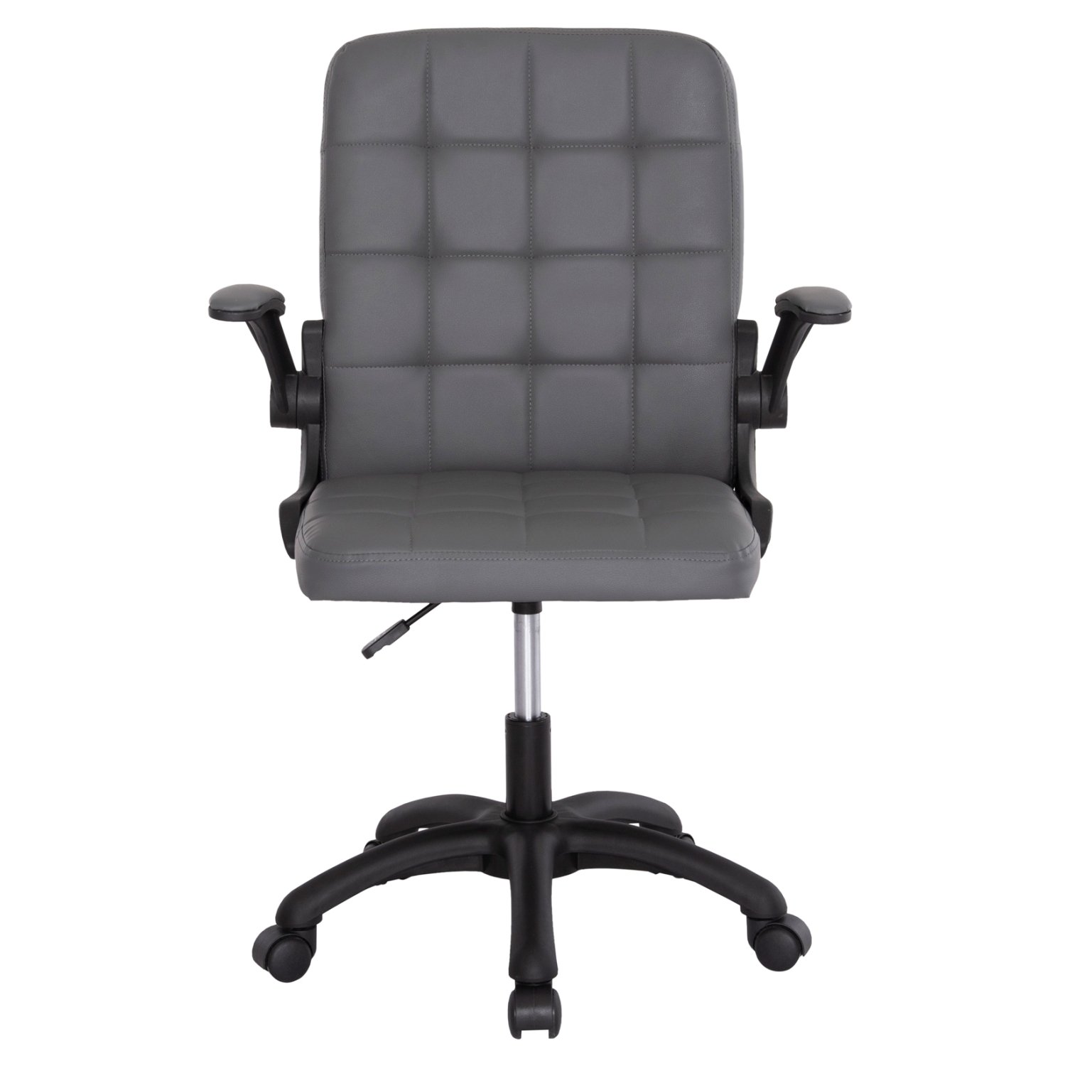Η καρέκλα γραφείου PORTIMA είναι άλλη μια νέα προσθήκη στην γκάμα μας. Διαθέτει μεσαίου ύψους πλάτη και μπράτσα που ανεβοκατεβαίνουν (flip-up). Η επένδυση της πλάτης και του τετράγωνου καθίσματος έχει γίνει με εξαιρετικής ποιότητας συνθετικό δέρμα PVC με στυλ καπιτονέ σε ΓΚΡΙ χρώμα. Τόσο τα μπράτσα όσο και ο υπόλοιπος σκελετός αλλά και η βάση είναι κατασκευασμένα από υλικό nylon σε ΜΑΥΡΟ χρώμα, όπως και τα ροδάκια. Η ανάρτηση διαθέτει μηχανισμούς ρύθμισης ύψους αλλά και ανάκλισης.