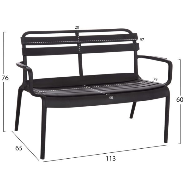 ΠΑΓΚΑΚΙ ΠΟΛΥΠΡΟΠΥΛΕΝΙΟΥ 2ΘΕΣΙΟ KORVER HM6332.02 ΜΑΥΡΟ 113x65x76Υεκ.