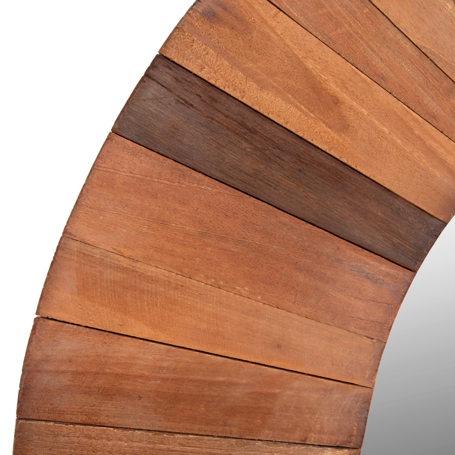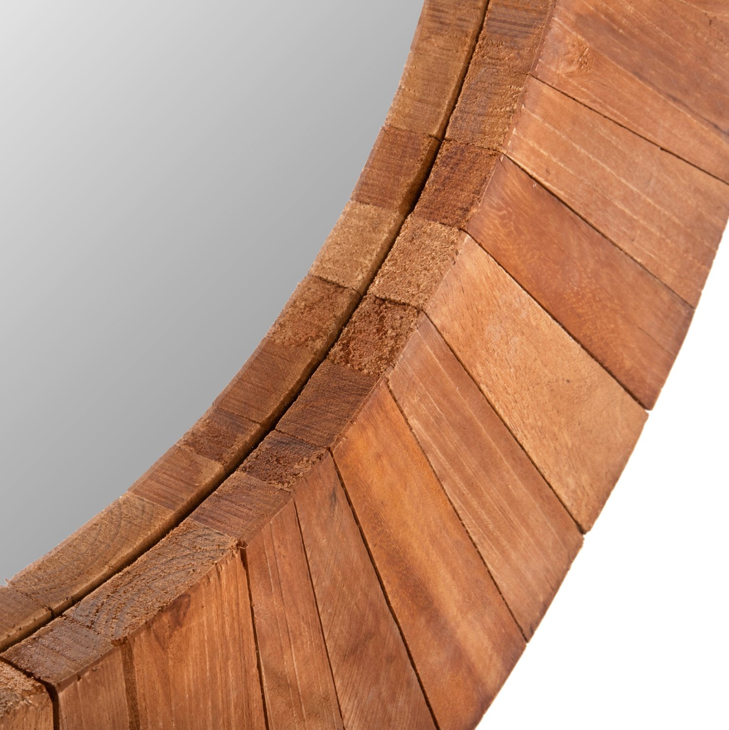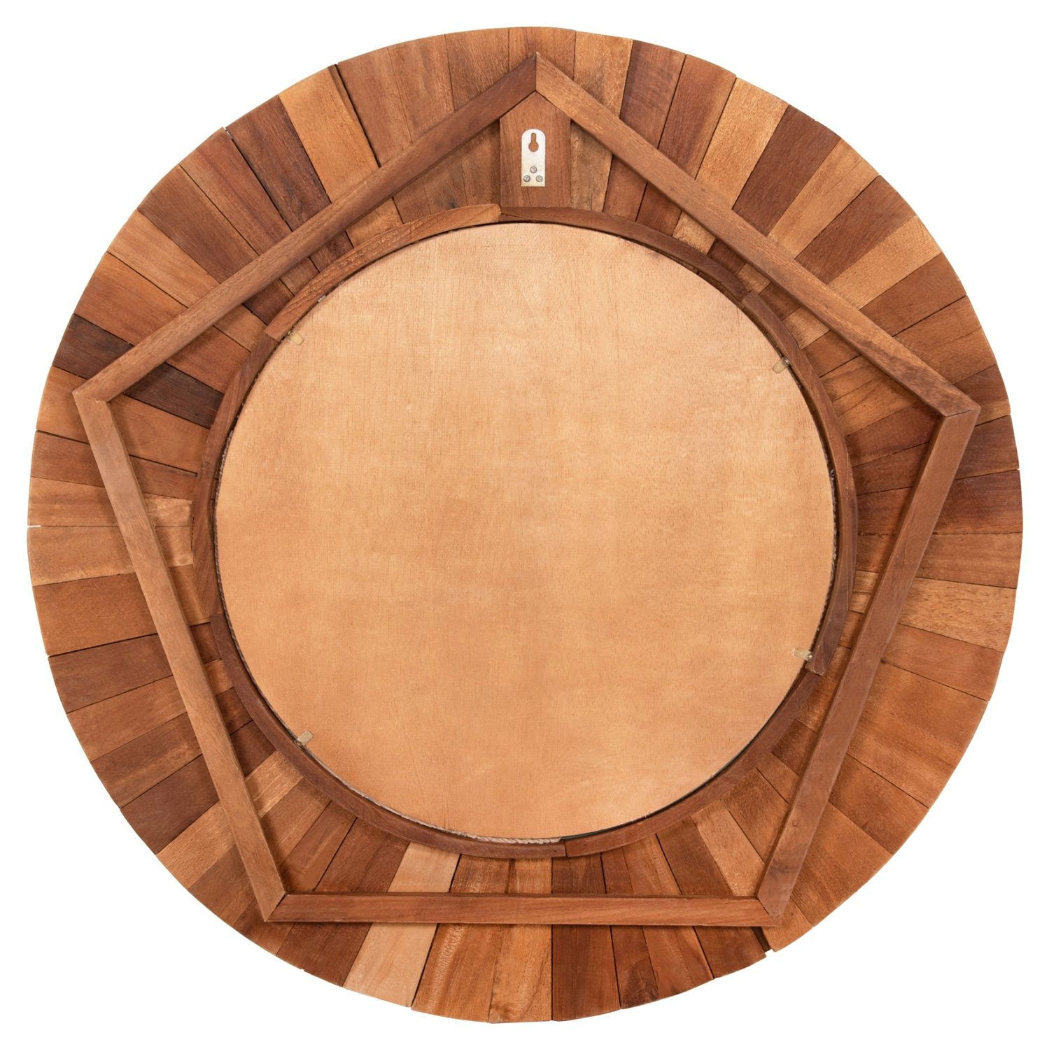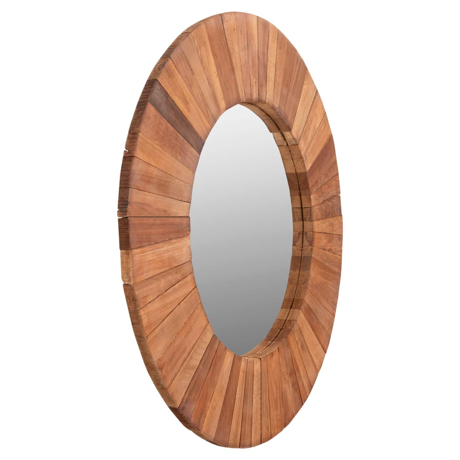 O καθρέπτης ΗΜ7726 είναι πραγματικά ένα όμορφο κομμάτι στην διακόσμηση του σπιτιού σας! Το design του είναι κλασικό αλλά με αριστοτεχνικά κατασκευασμένη κυκλική διάταξη των ξύλων, τα οποία στο κέντρο τους «φιλοξενούν» τον καθρέπτη. Τα ξύλα είναι στο φυσικό τους χρώμα και οι διαστάσεις όλης της κατασκευής είναι «πλούσιες».