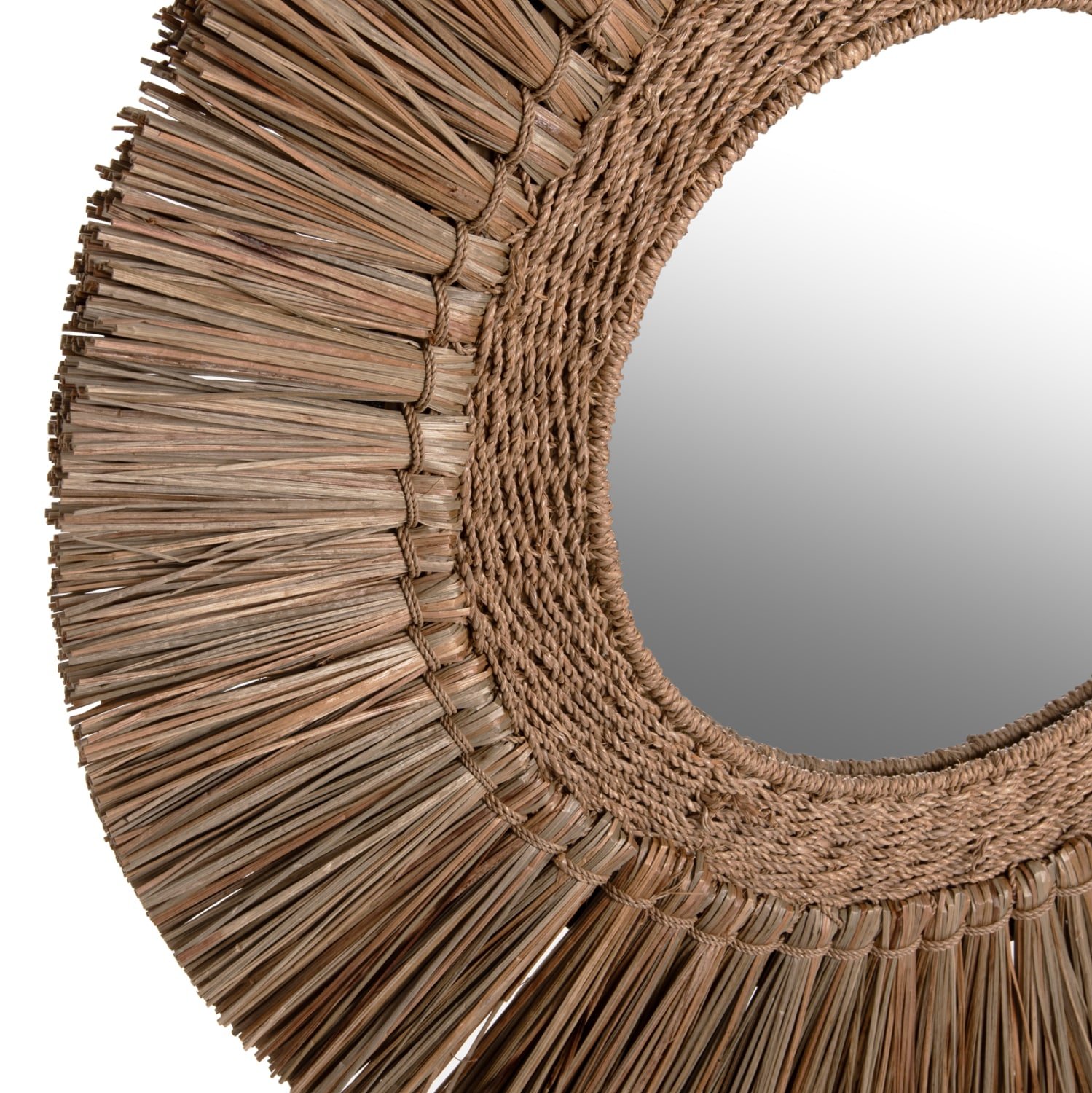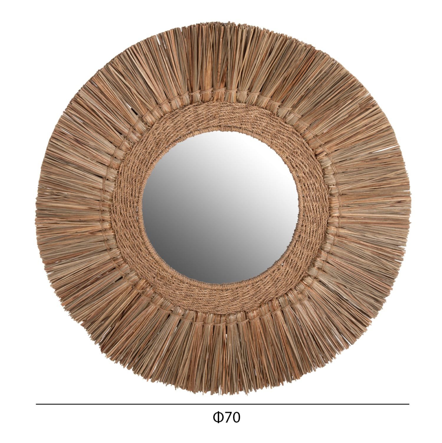 O καθρέπτης ΗΜ7831, είναι πραγματικά ένα εντυπωσιακό κομμάτι στην διακόσμηση του χώρου σας! Το design του είναι όμορφο με πλαίσιο από το χόρτο Mendong, το οποίο στο κέντρο του «φιλοξενεί» τον καθρέπτη, ενώ είναι σε φυσικό χρώμα. Το χαρακτηριστικό είναι ότι ο καθρέφτης είναι μικρός και αποτελεί κυρίως διακοσμητικό στοιχείο.