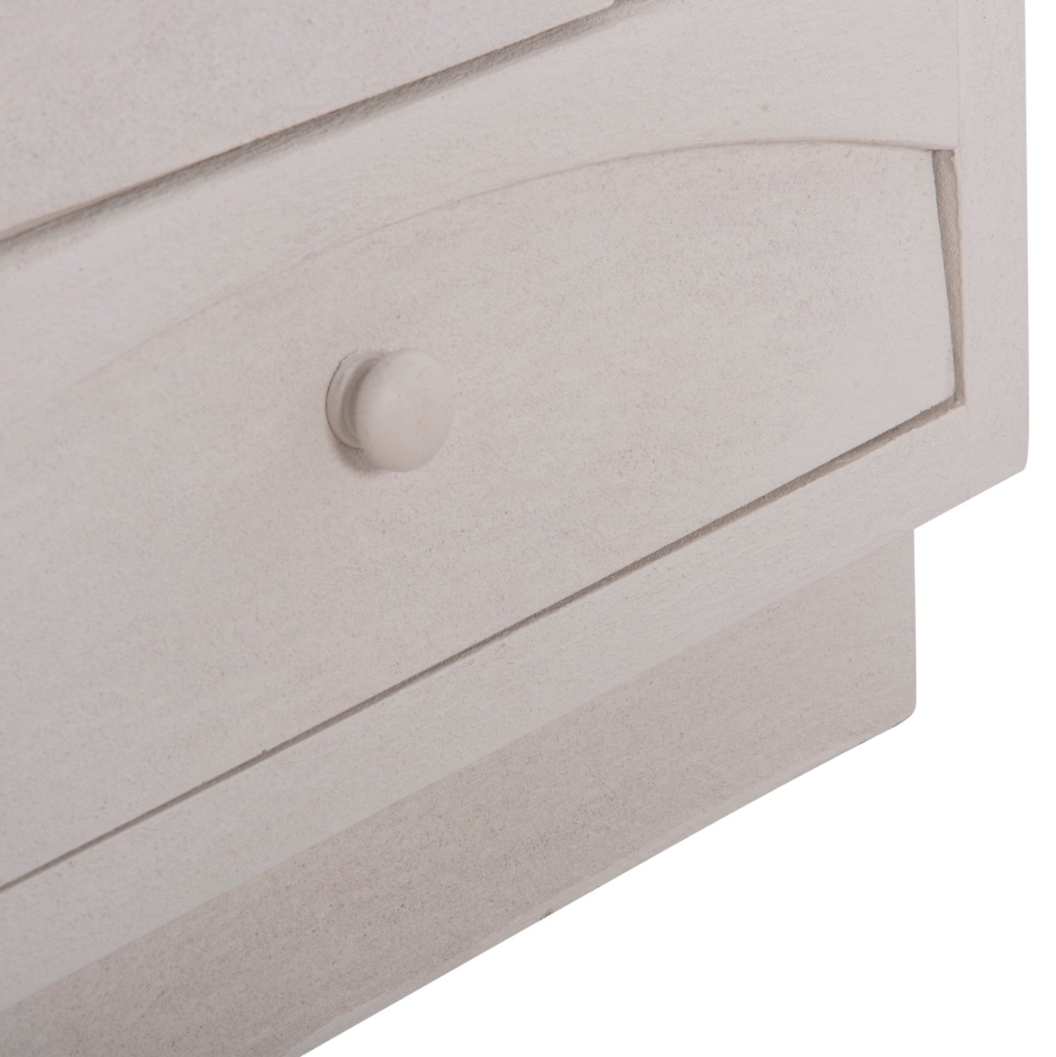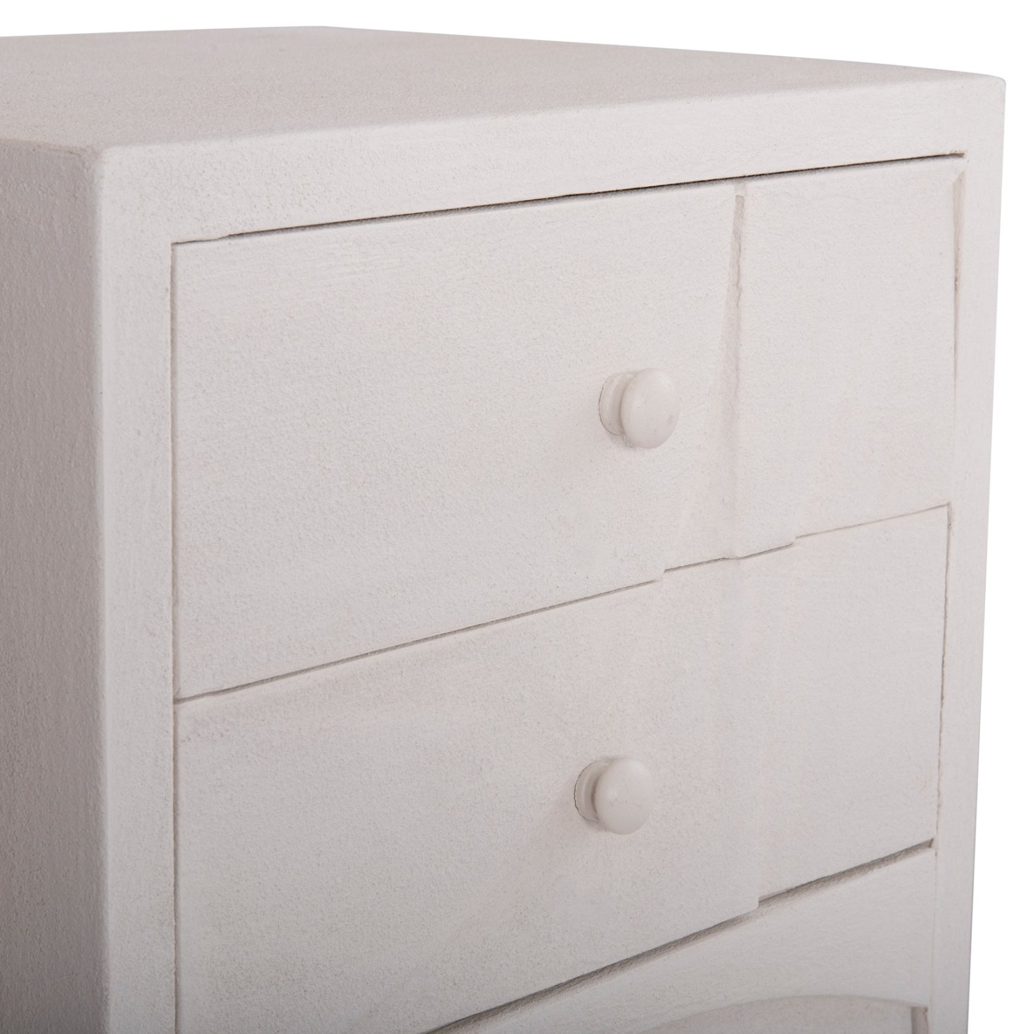 Το χειροποίητο κομοδίνο αυτό είναι εξολοκλήρου κατασκευασμένο από MDF σε ΥΠΟΛΕΥΚΟ χρώμα με υφή σαγρέ τσιμέντου, που αποτελεί την πιο σύγχρονη τάση στον τομέα του interior design. Διαθέτει 3 συρτάρια με ανάγλυφα σχέδια, που προσφέρουν αρκετό χώρο για τοποθέτηση όλων όσων θέλετε σε ένα κομοδίνο. Ενδεικνυται για μια “νησιωτικού” στυλ διακόσμηση!