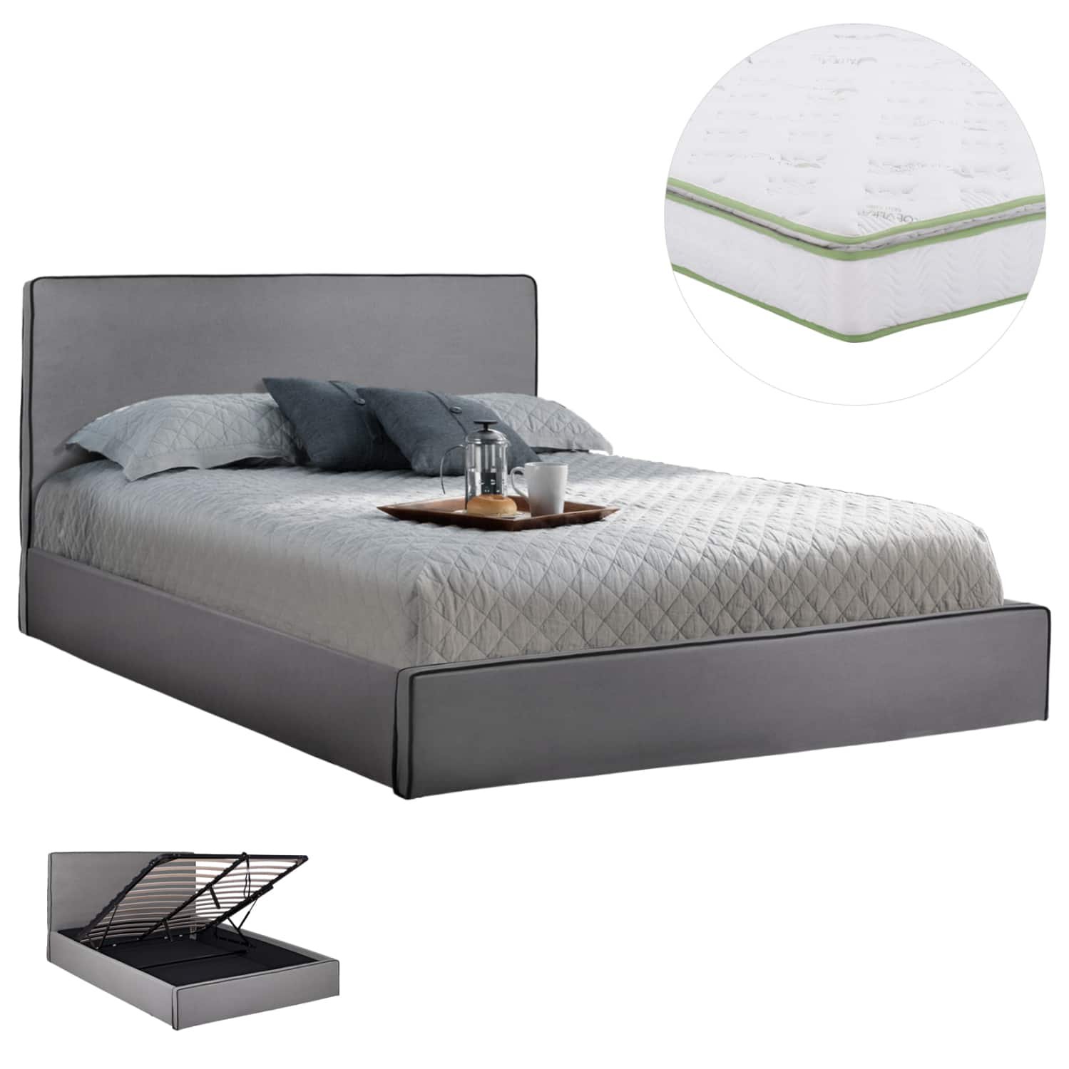 ΚΡΕΒΑΤΙ ΔΙΠΛΟ ΜΕ ΑΠΟΘ.ΧΩΡΟ & ΣΤΡΩΜΑ ALLIE HM21170 ΓΚΡΙ ΥΦΑΣΜΑ–ΓΙΑ 160×200εκ